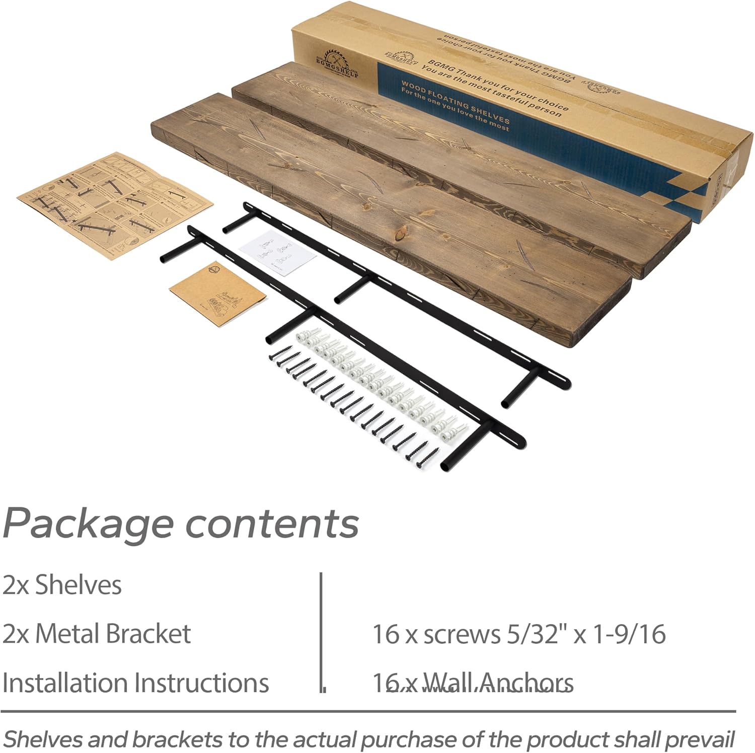 - EASY TO INSTALL: These floating shelves come with stainless steel galvanized invisible brackets, toggle bolts for drywall, and simple instructions to help you install them. These wall shelves are easy to assemble, requiring only two boards and the necessary screws and hardware. We also provide detailed instructions for quick and easy assembly!