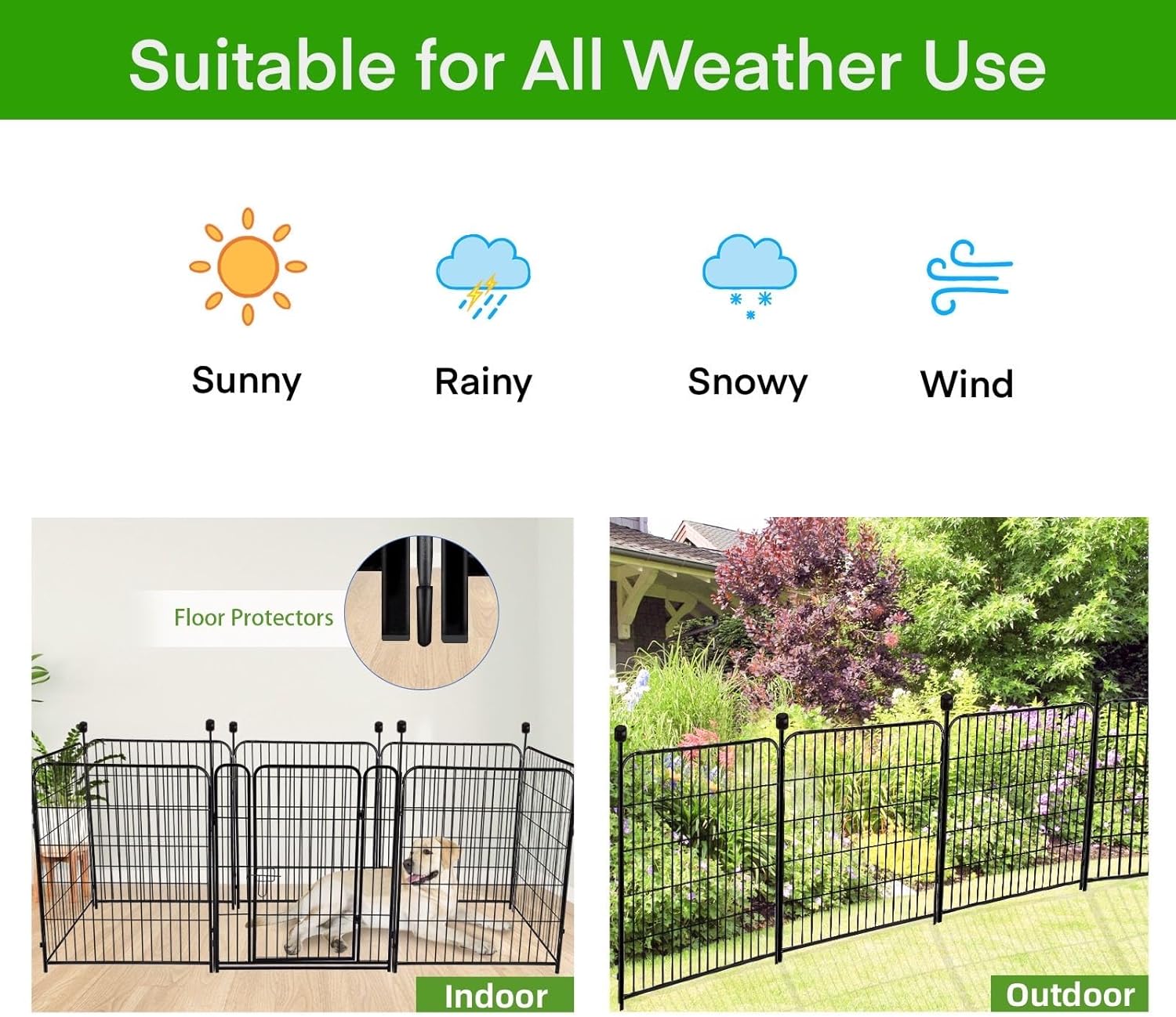 - Outdoor or Indoor: Our Spiked Connecting Poles are Designed to be Longer so that You Can Insert the Poles into the Soil Deeper, Ensuring A More Stable Installation,The Fence Can be Used as An Indoor and Outdoor Pet Fence