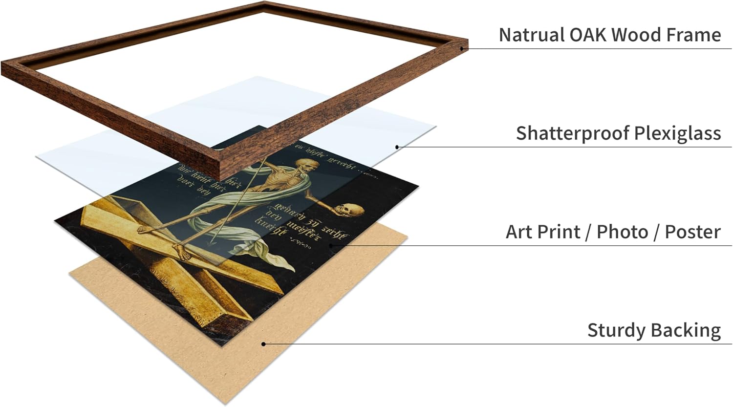 Poster Master Vintage Medieval Poster - Retro Gothic Print - Gift for Artist, Friend - Allegory of Life and Death, Skeleton, Dark, Skull - Wall Decor for Home, Living Room, 11x14 Brown Framed