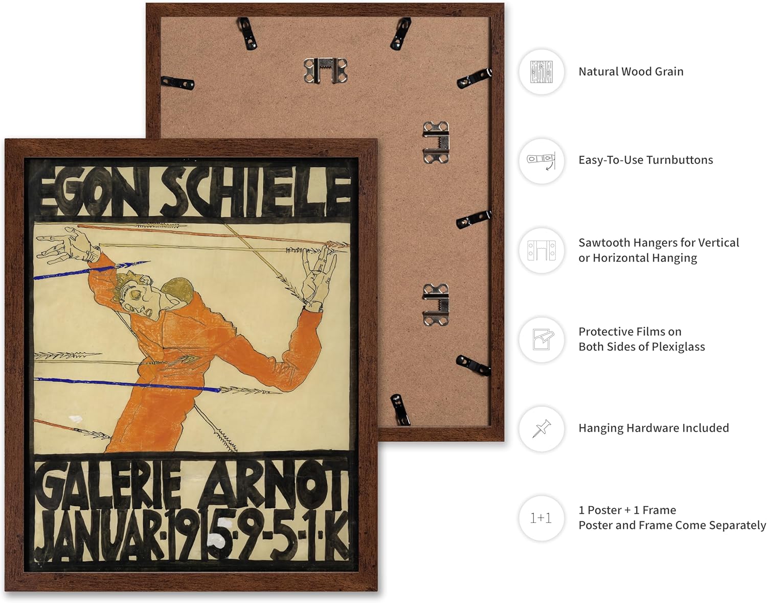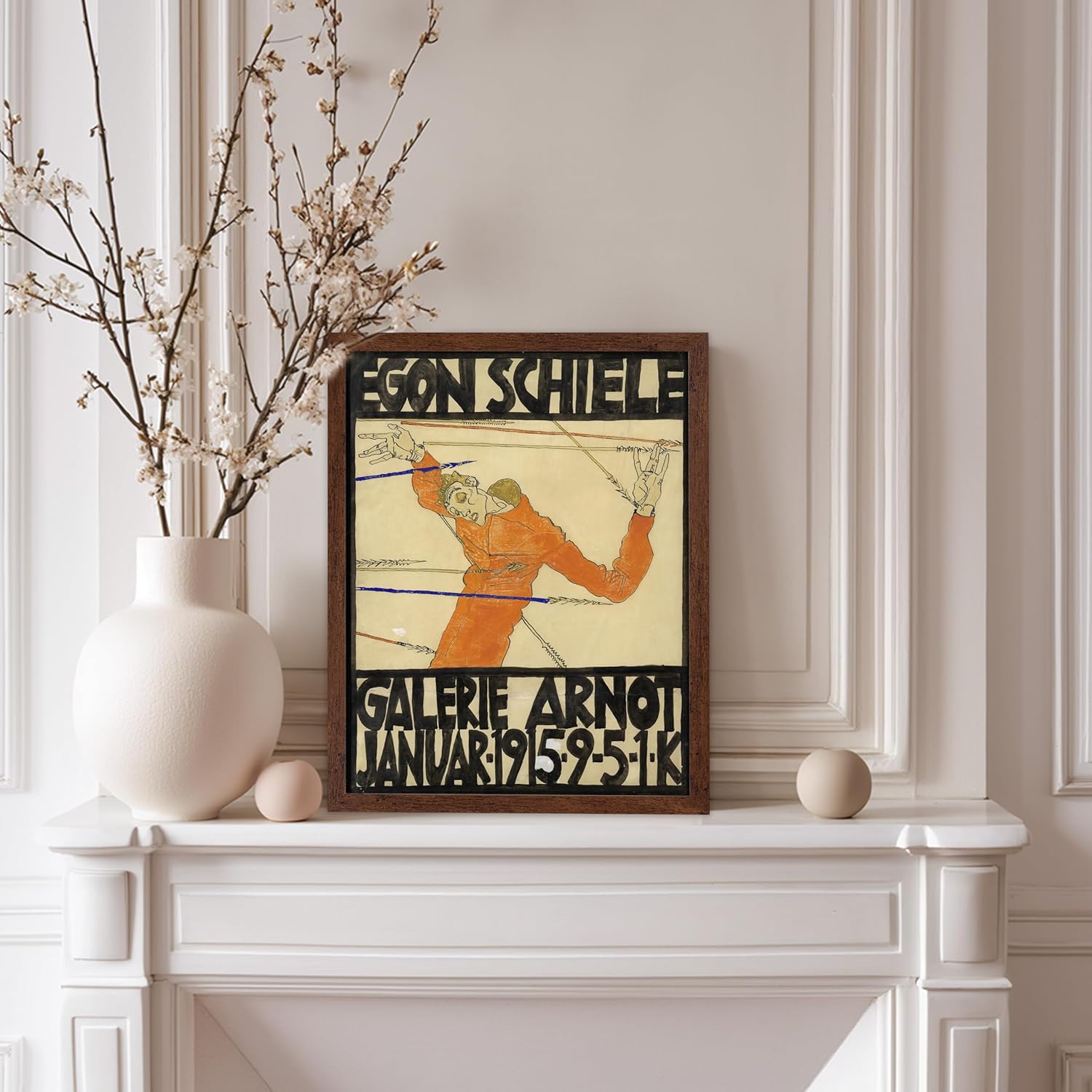 Poster Master Vintage Painting Poster - Retro Expressionism Print - Self Portrait as the Martyred St Sebastian - Gift for Artist, Friend - Wall Decor for Home, Office, 8x10 Brown Framed