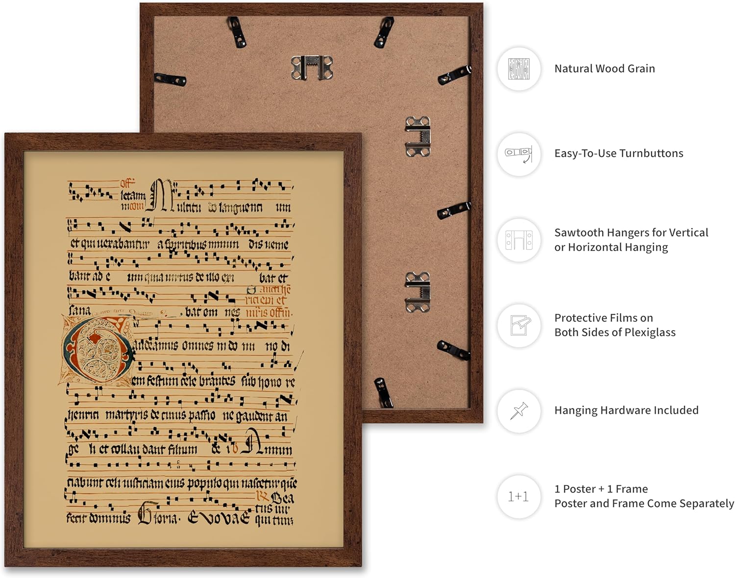 Poster Master Vintage Hymnal Poster - Retro Music Print - Gift for Artist, Friend - Graduale Aboense, Gregorian Chant Manuscript, Score - Wall Decor for Living Room, Bedroom, 11x14 Brown Framed