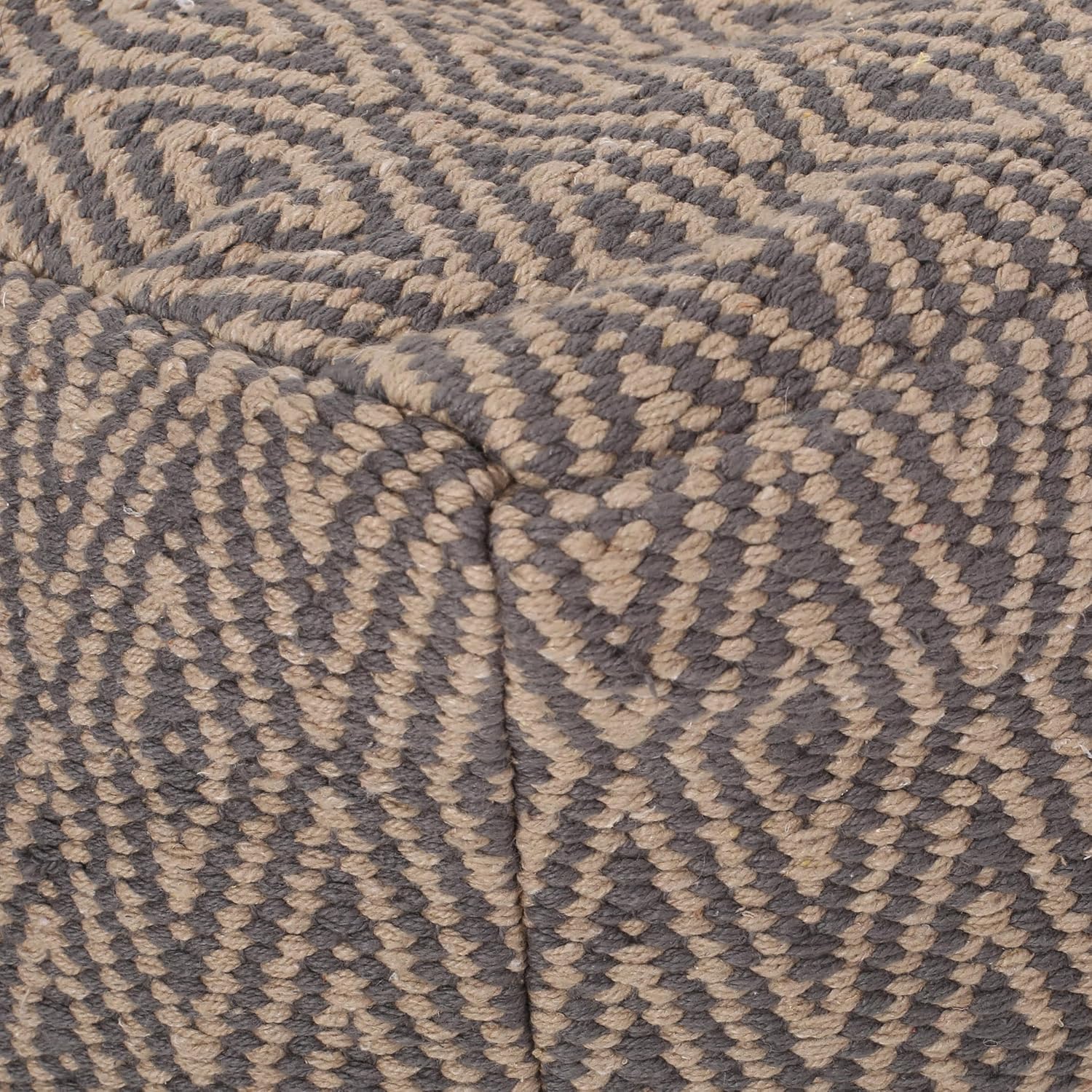 GDFStudio Boho Handmade Fabric Cube Pouf Ottoman Foot Stool - Bean Bag Floor Chair - Foot Rest Couch for Living Room Bedroom,Dark Gray and Brown,15"" x 15"" x 15"", Sovereig,brown Beige Yellow
