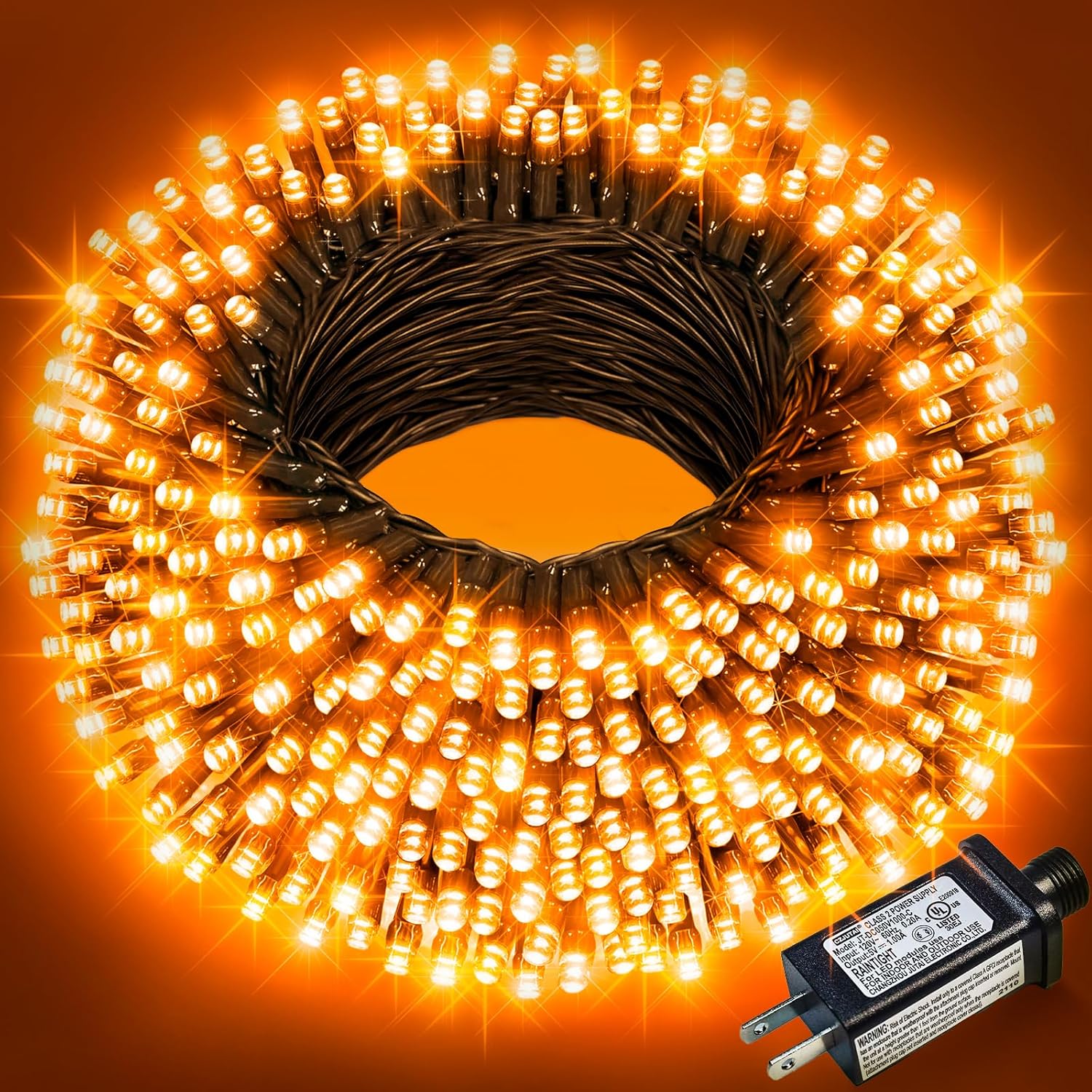 Orange Halloween Lights Outdoor, 100FT 300 LED Halloween String Lights with 8 Modes Waterproof, Plug in Green Wire Twinkle Tree Light for Indoor Patio Yard Party Holiday Decorations