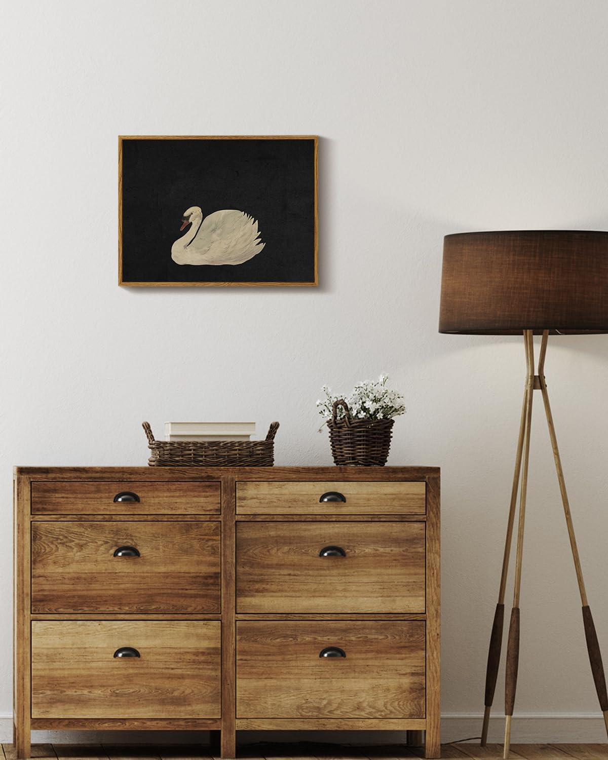 - VINTAGE SWAN OIL PAINTING: Elevate your living space with VIYYIEA swan art canvas wall decor. The swan is gracefully floating on a dark background that accentuates the purity and elegance. The frame around the swan wall art painting adds a sense of classic sophistication. The combination of the black and the luminous swan creates a striking contrast, highlighting the serene beauty of the bird, making it a timeless captivating piece.