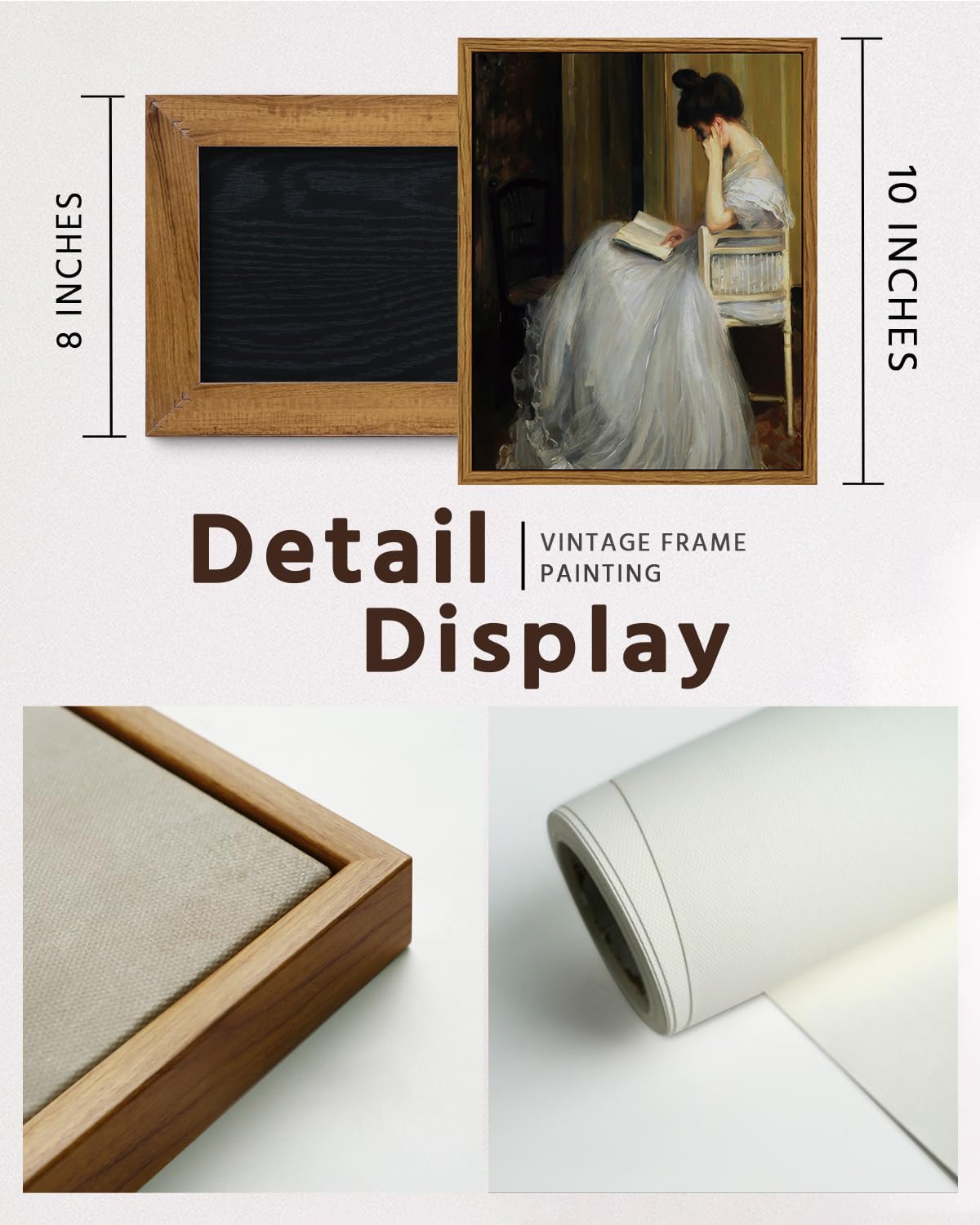 VIYYIEA Framed Canvas Wall Art Home Decor Portrait Art for Living Room Women Reading Pictures Bedroom Bathroom Wall Decor Mid Century Lady Oil Painting Room Decor Vintage Prints Aesthetic 8x10in