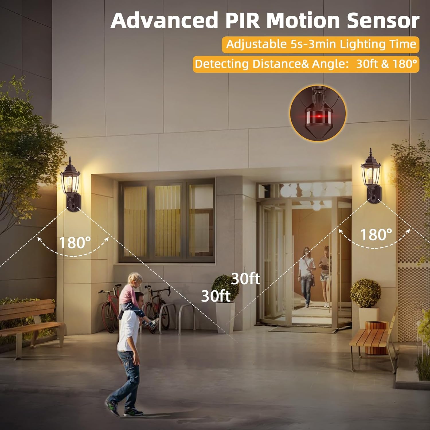 - Wide Detected Range & Compatible With E26 Bulbs: Our motion sensor wall lanterns can be easily triggered by moving people, cars or animals. The detection distance of sensor is from 0 to 30 feet. Bulbs are not included in the package