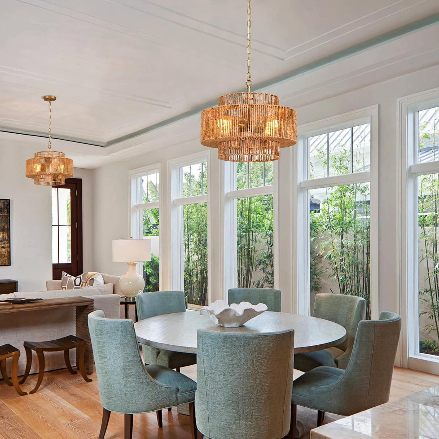 - 【Easy to Install】Our rattan chandelier for dining room comes with all necessary hardware and an easy-to-follow installation guide.You'll have this elegant rattan chandelier hanging in no time, transforming your room with its allure.