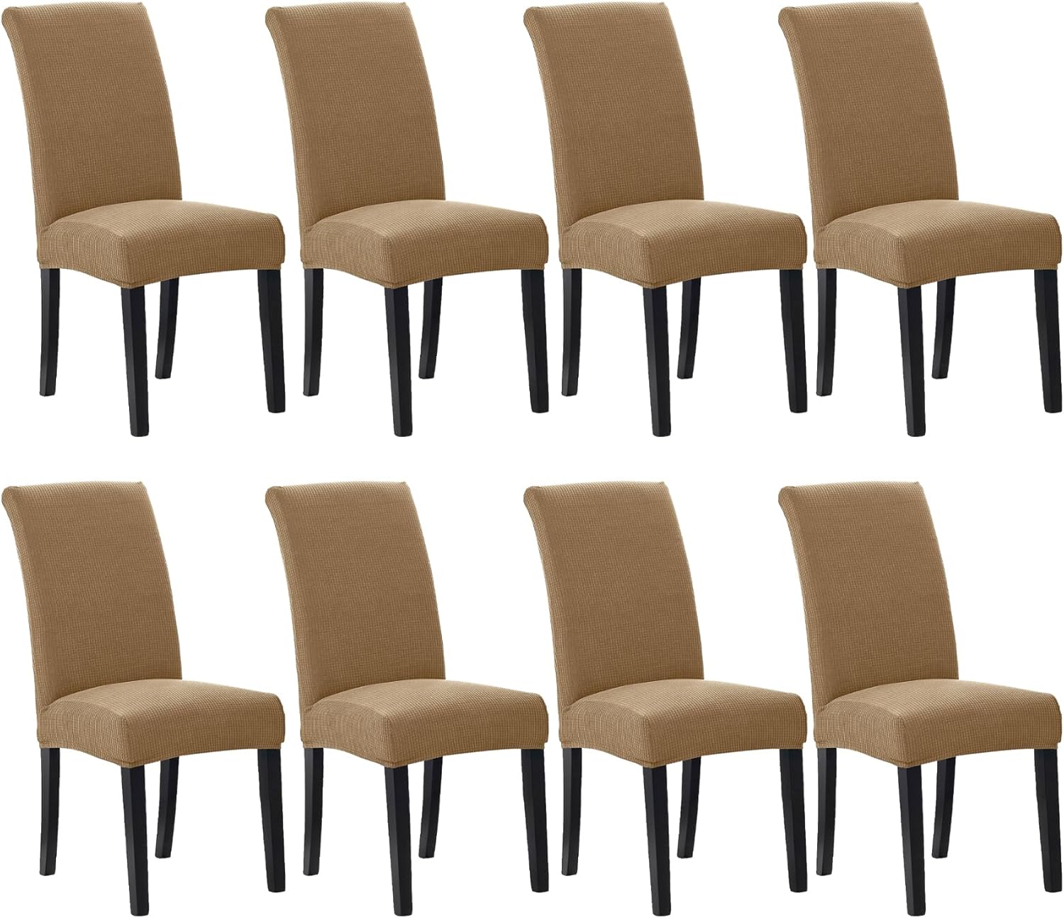 Howhic Stretch Chair Covers for Dining Room Set of 8, Removable Washable Dining Room Chair Covers, Dining Chair Slipcovers Seat Protector, Great Decor for Home and Banquet (Tan, 8 Pack)