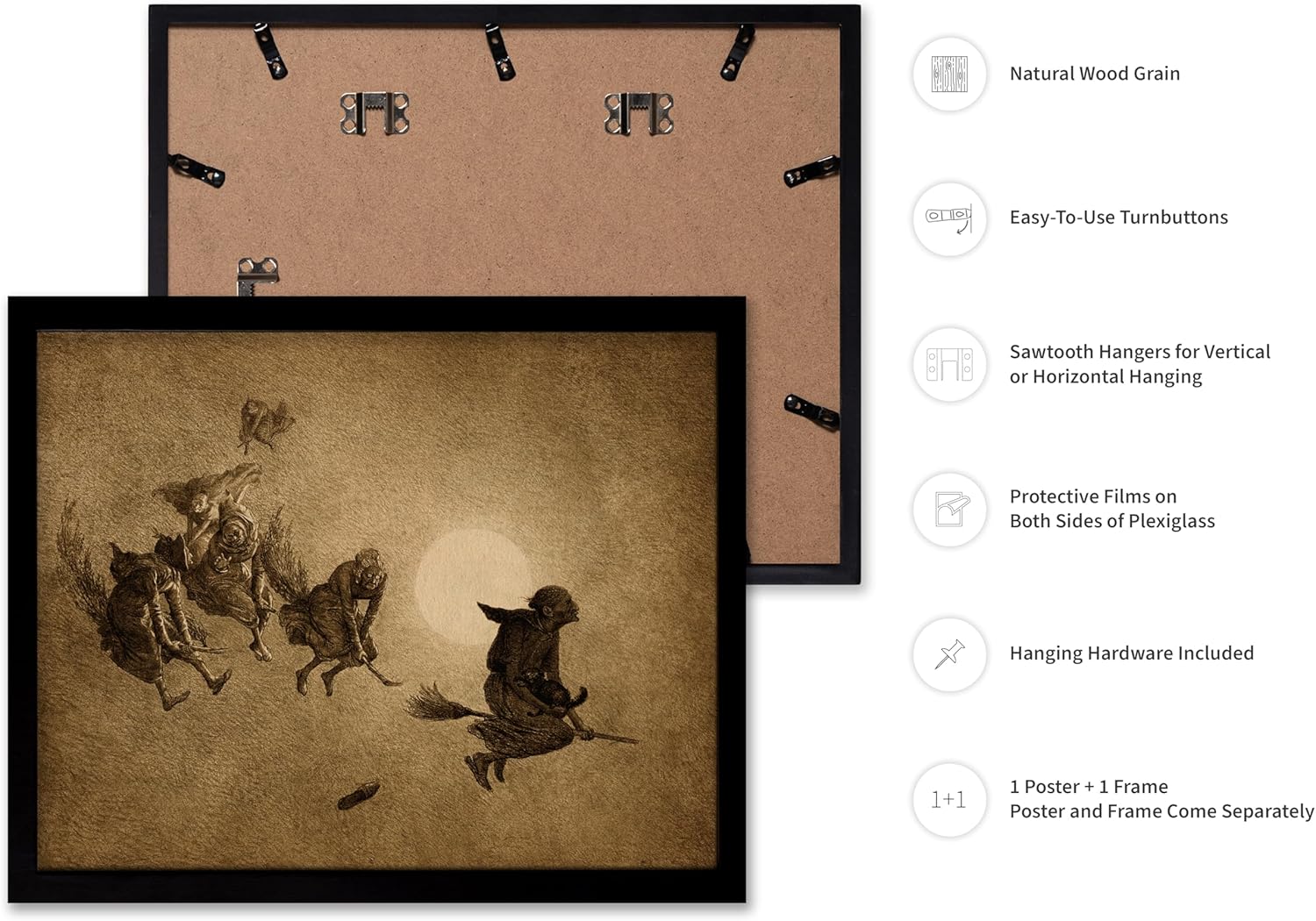 Poster Master Vintage William Holbrook Beard Poster - Retro Occult Print - Gift for Gothic, Horror Fan - The Witches Ride, Pagan, Goth, Magic - Wall Decor for Bedroom, Dorm, 11x14 Black Framed