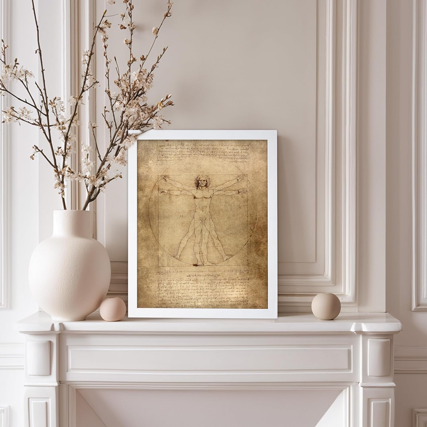 Poster Master Classic Leonardo Da Vinci Poster - Vintage Renaissance Print - Gift for Artist, Friend - Vitruvian Man, Proportion, Symmetry, Human Body - Wall Decor for Office, 11x14 White Framed
