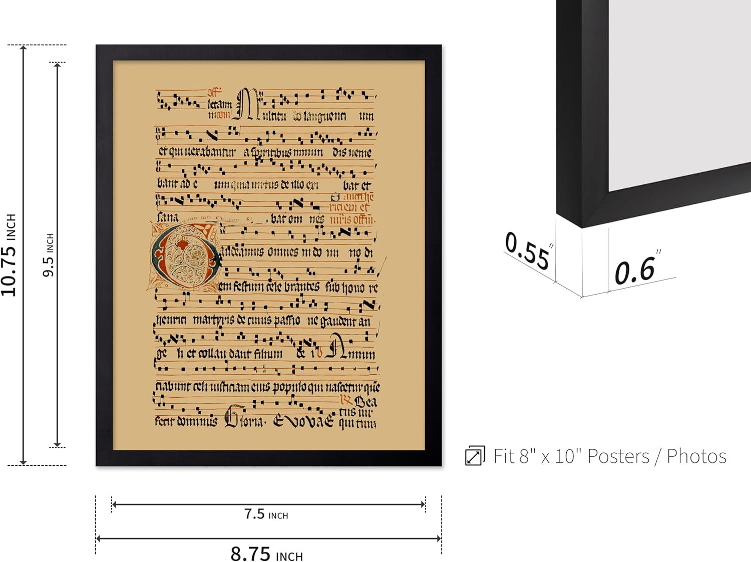 Poster Master Vintage Hymnal Poster - Retro Music Print - Gift for Artist, Friend - Graduale Aboense, Gregorian Chant Manuscript, Score - Wall Decor for Living Room, Bedroom, 8x10 Black Framed