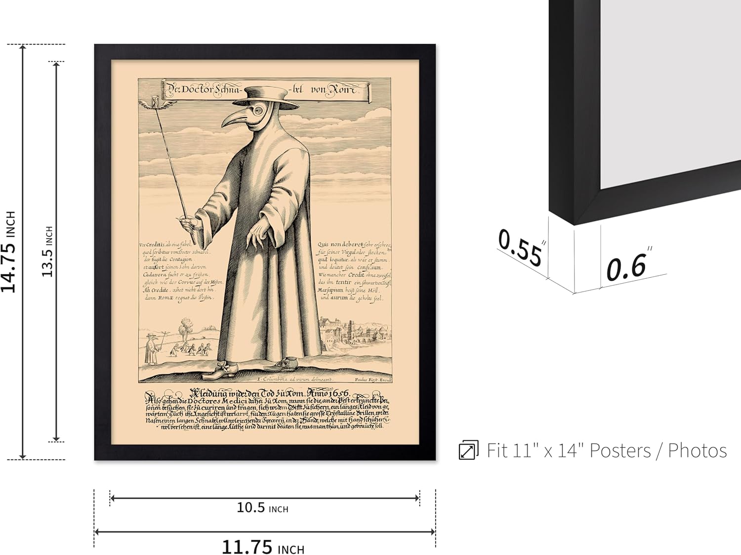 Poster Master Vintage Medieval Poster - Retro Illustration Print - Gift for Friend - Plague Doctor, Pandemic Mask, Physician, Black Death - Wall Decor for Home, Living Room, 11x14 Black Framed
