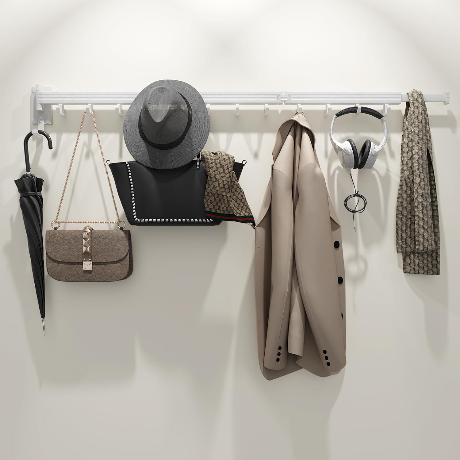 - β Upgrade Dual-J-Shape Hooks Design -- Our clothes drying rack features an innovative design with dual J-shaped & circular hooks, providing you with versatile hanging options. The additional large hooks and extendable rods make it easy to hang a variety of items with ease. Maybe you will fancy this wall-mounted clothes rack, as it brings convenience and efficiency to your daily life.