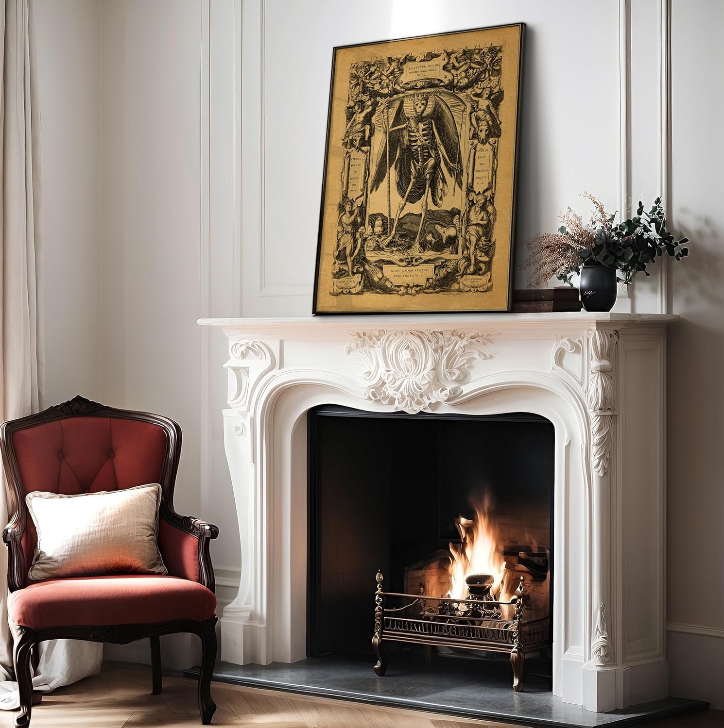 Poster Master Vintage Medieval Poster - Retro Gothic Print - Gift for Artist, Friend - Angel of Death, Memento Mori, Life, Skeleton, Dark - Wall Decor for Home, Living Room, 24x32 Unframed Wall Art