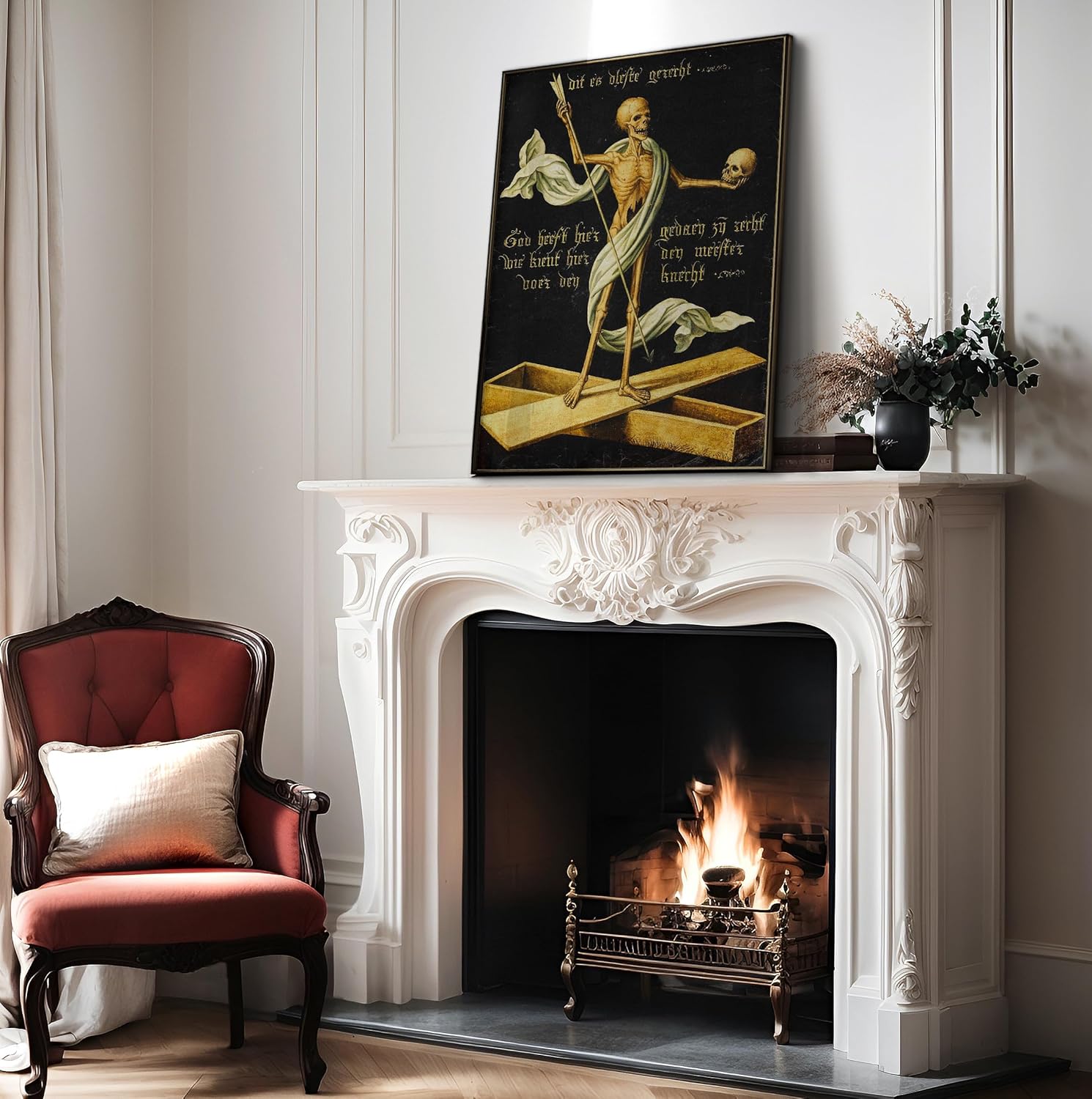 Poster Master Vintage Medieval Poster - Retro Gothic Print - Gift for Artist, Friend - Allegory of Life and Death, Skeleton, Dark, Skull - Wall Decor for Home, Living Room, 18x24 Unframed Wall Art