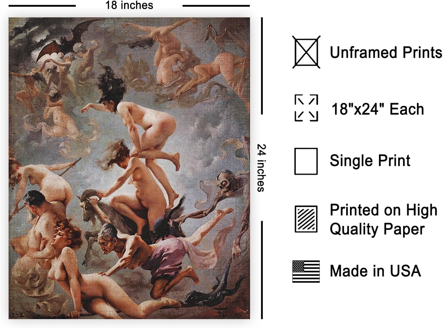 Poster Master Vintage Luis Ricardo Falero Poster - Retro Occult Print - Gift for Gothic, Horror Fan - Witches Going to their Sabbath, Pagan - Wall Decor for Bedroom, Dorm, 18x24 Unframed Wall Art