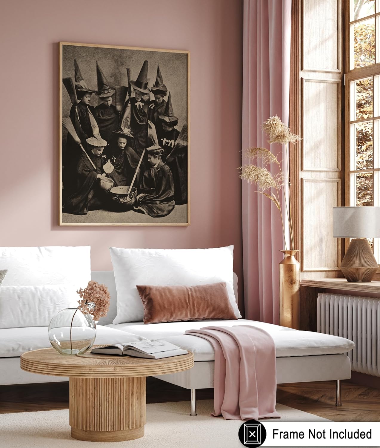Poster Master Vintage Photograph Poster - Retro Halloween Print - Gift for Artist, Friend - Witches Cooking, Pointy Hats, Broomsticks, Black Magic - Wall Decor for Bedroom, 24x32 Unframed Wall Art