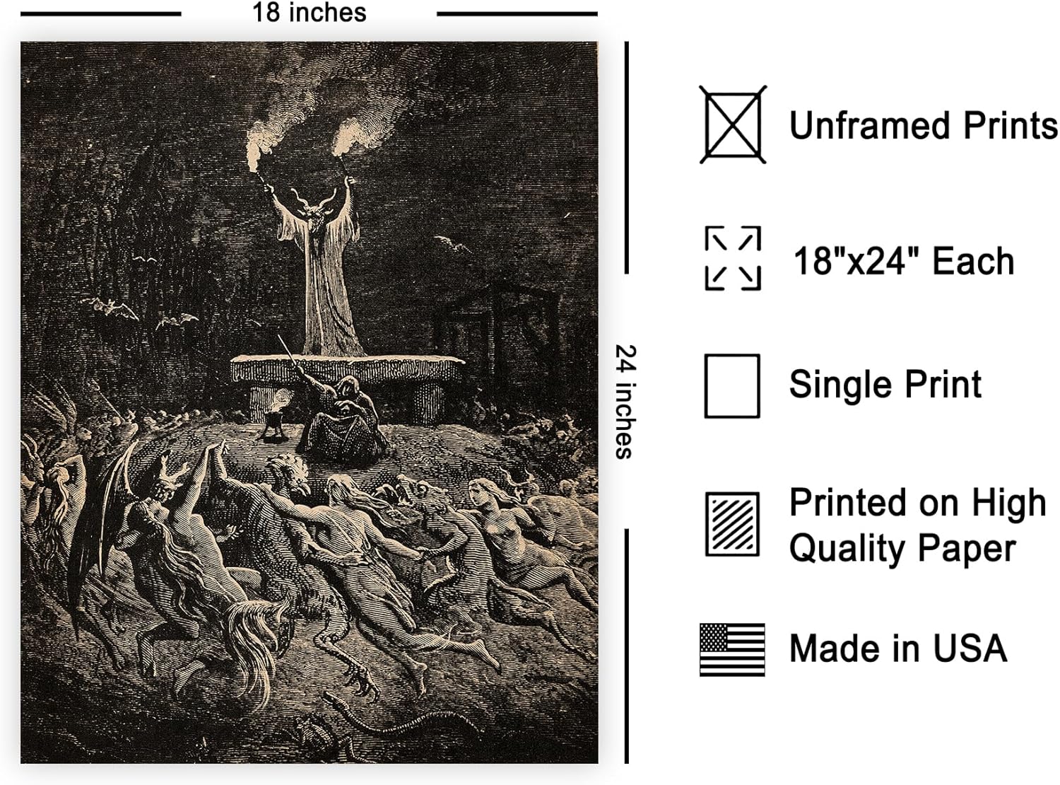 Poster Master Vintage Gustave Dore Poster - Retro Illustration Print - Gift for Gothic, Horror Fan - Dance of Sabbath, Witch, Magic, Spell - Wall Decor for Bedroom, Dorm, 18x24 Unframed Wall Art