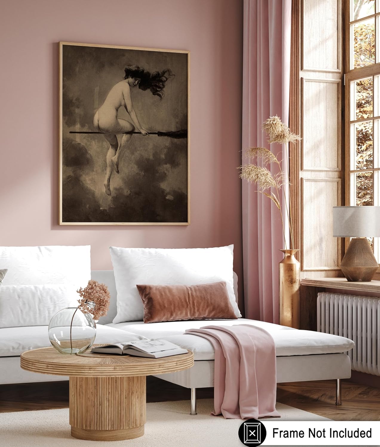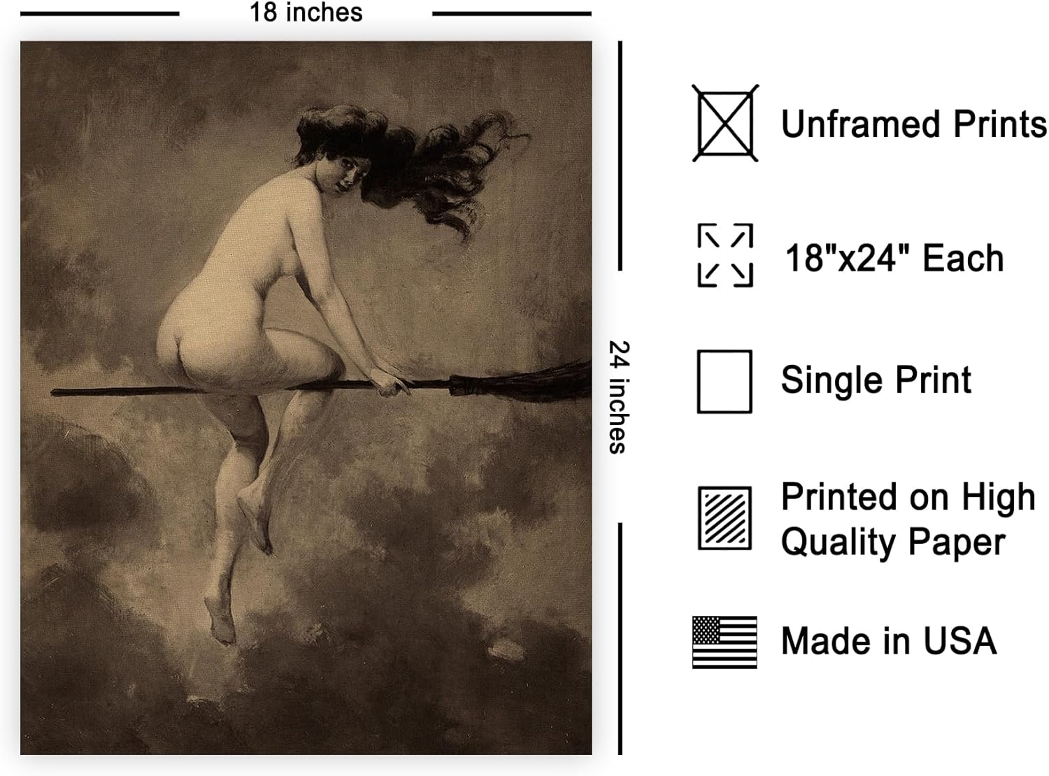 Poster Master Vintage Albert Joseph Penot Poster - Retro Halloween Print - Gift for Artist, Friend - Departure for the Sabbath, Naked Witch on Broom - Wall Decor for Bedroom, 18x24 Unframed Wall Art