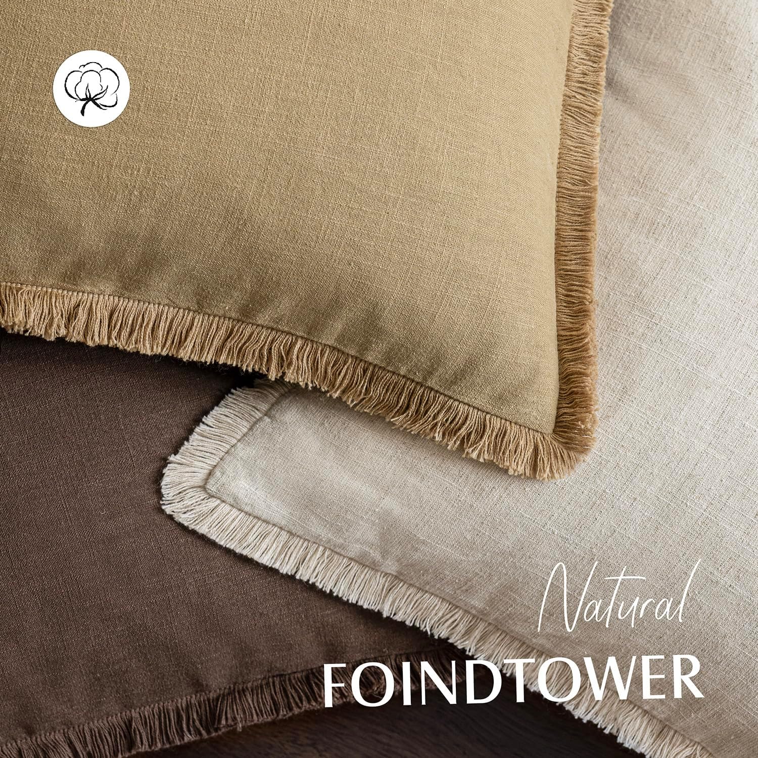 Foindtower Set of 2 Decorative Linen Fringe Throw Pillow Covers Farmhouse Cushion Cover with Tassels Soft Accent Pillowcase for Couch Chair Sofa Bed Living Room Home Decor,24×24 Inch,Light Khaki Taupe