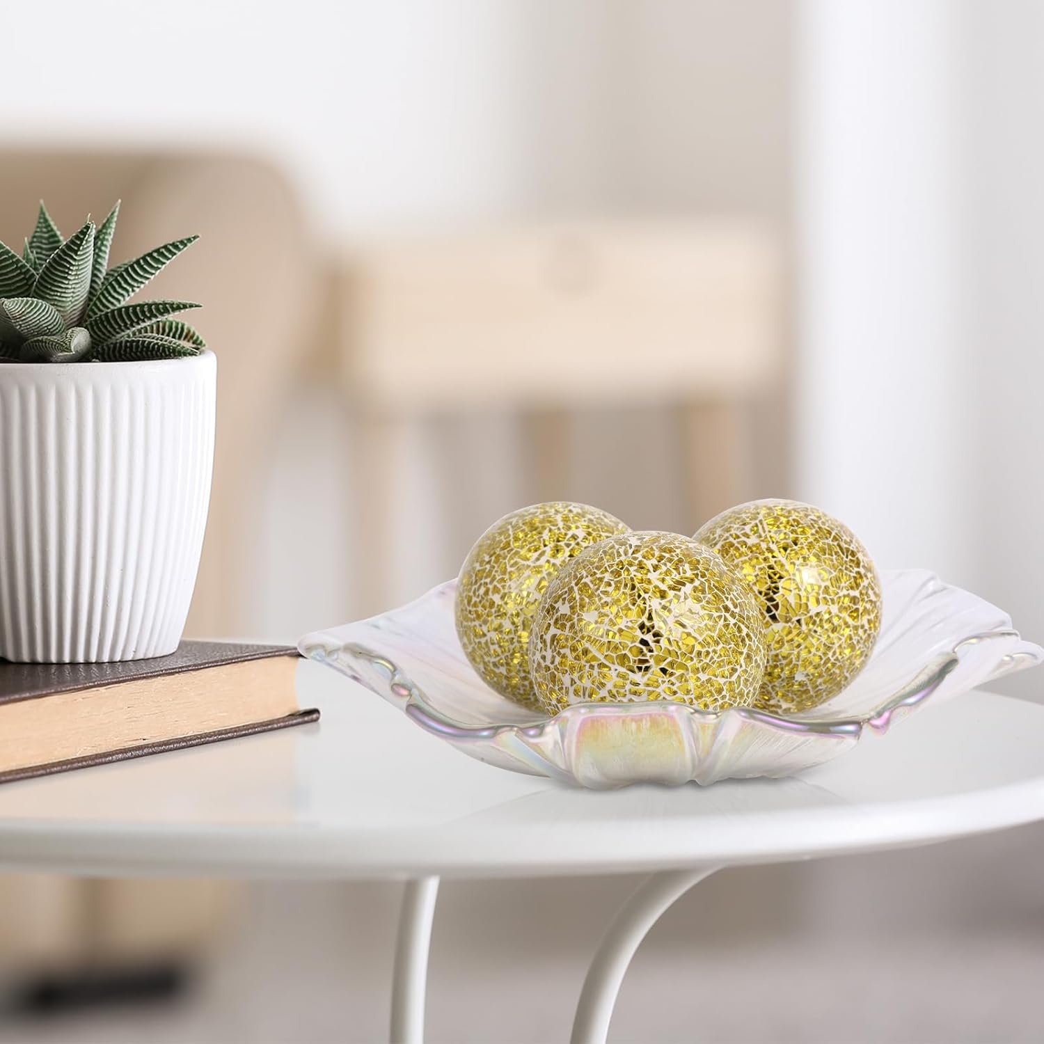6Pcs Decorative Ball Set, 6cm/2.4inch Mosaic Glass Orbs Centerpiece Balls for Decorate Tables, Wedding Party (Golden)