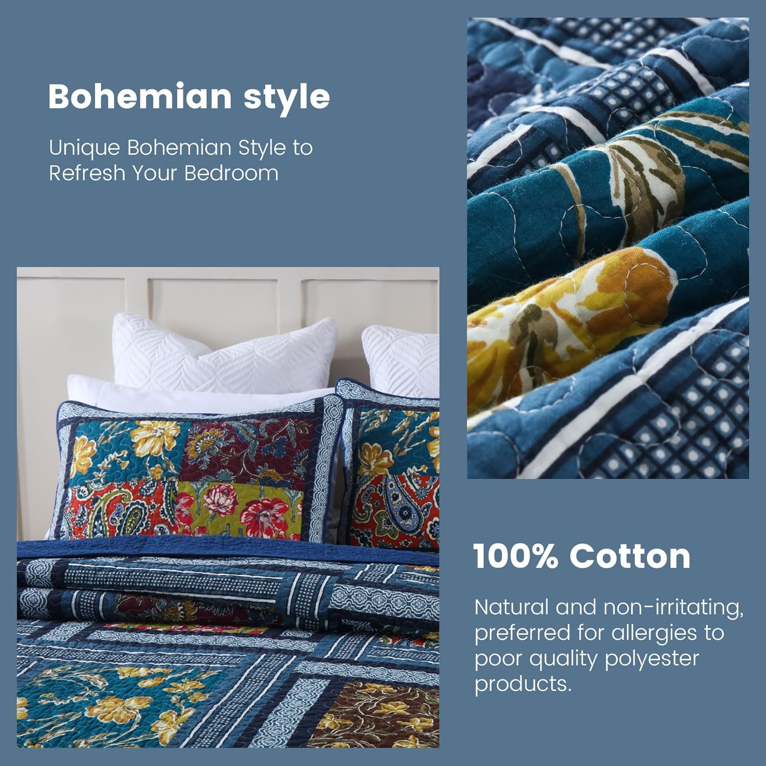 - Effortless Serenity!: Unlike other materials, our 100% cotton quilts offer unparalleled comfort, effortlessly soothing your senses. Cleaning is a breeze—simply toss it in the washing machine and let it dry. Designed for year-round use, you won’t need an old, heavy comforter in winter.