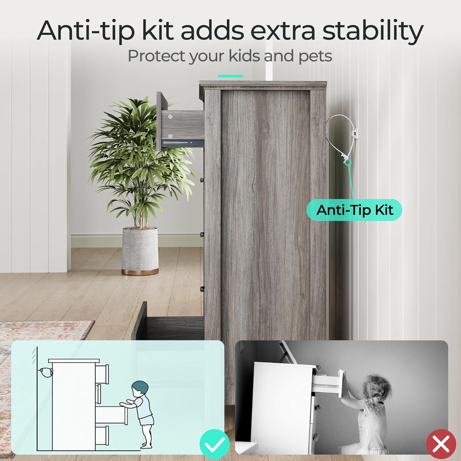 • Safety First: Equipped with a wall anchor kit to prevent tip-over incidents, this dresser for closet prioritizes safety. Smooth metal runners with safety stops ensure drawers stay securely in place. Assembly instructions and hardware are included for easy setup.