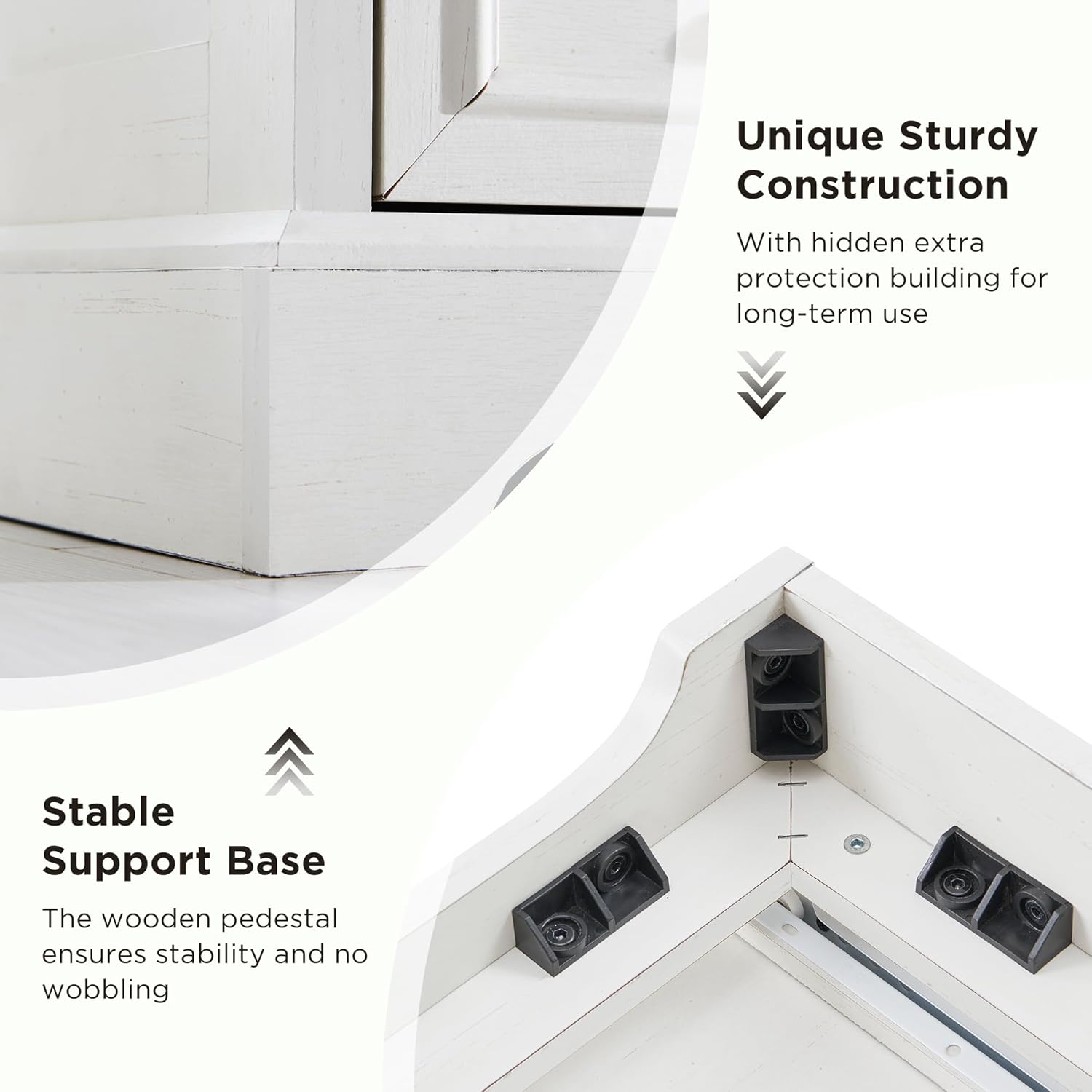 • MODERN FARMHOUSE: The molding details, support pedestal and drawer's bar handles add a romantic touch. The finish highlights the natural beauty of the engineered woodโ€™s grain and hue, which vary slightly from side to side and boast a modern farmhouse flair. This versatile piece will takes decoration easy in spaces