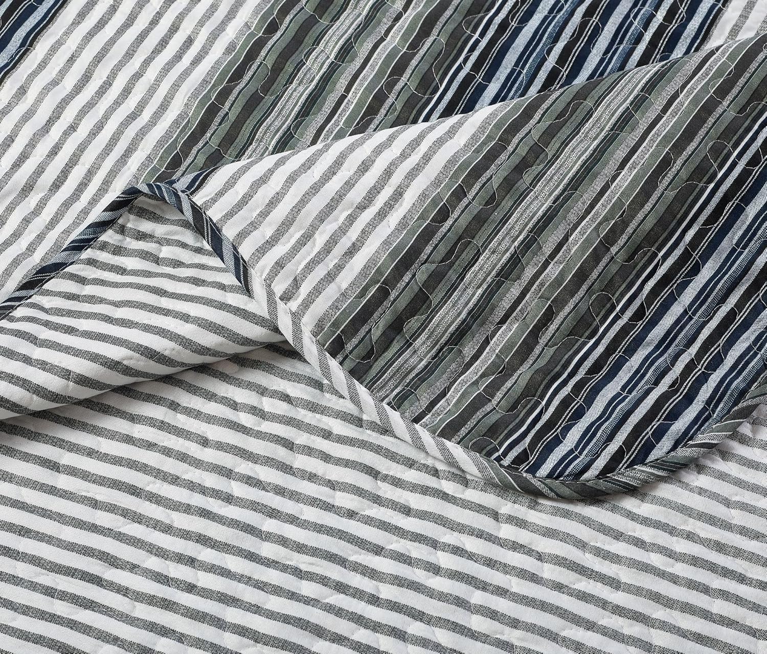 Brilliant Sunshine Multi Grey Stripes Patchwork, 2-Piece Quilt Set with 1 Sham, Reversible Bedspread, Soft Lightweight Coverlet, All-Season, Twin, Multi Grey