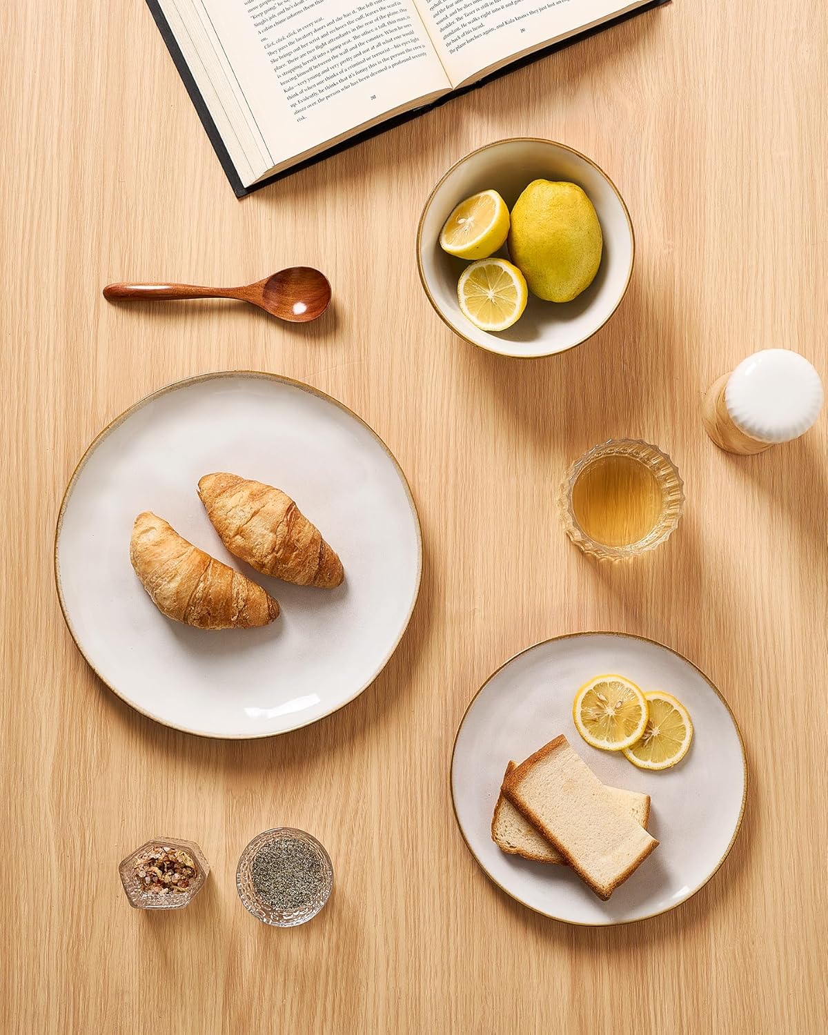 Famiware Dinnerware Sets for 8, Ocean Round 24-Piece Kitchen Plates and Bowls Sets, Reactive Glaze, Microwave and Dishwasher Safe, Scratch Resistant, Cappuccino White
