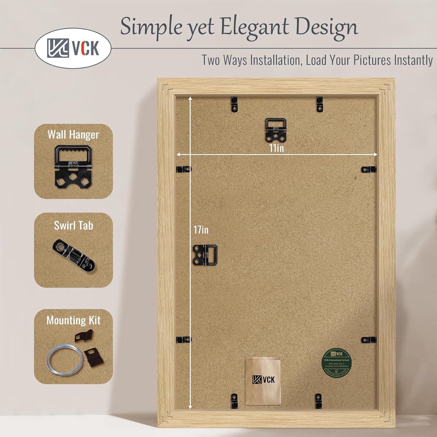 VCK 11x17 Picture Frame 3 Pack - Oak, Natural Solid Wood Poster Frames, Wall Gallery Frame