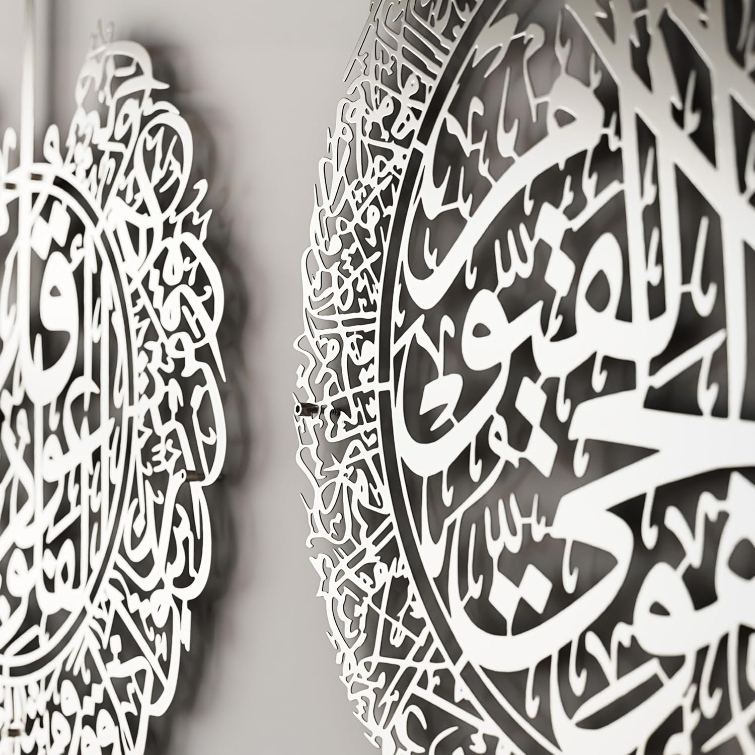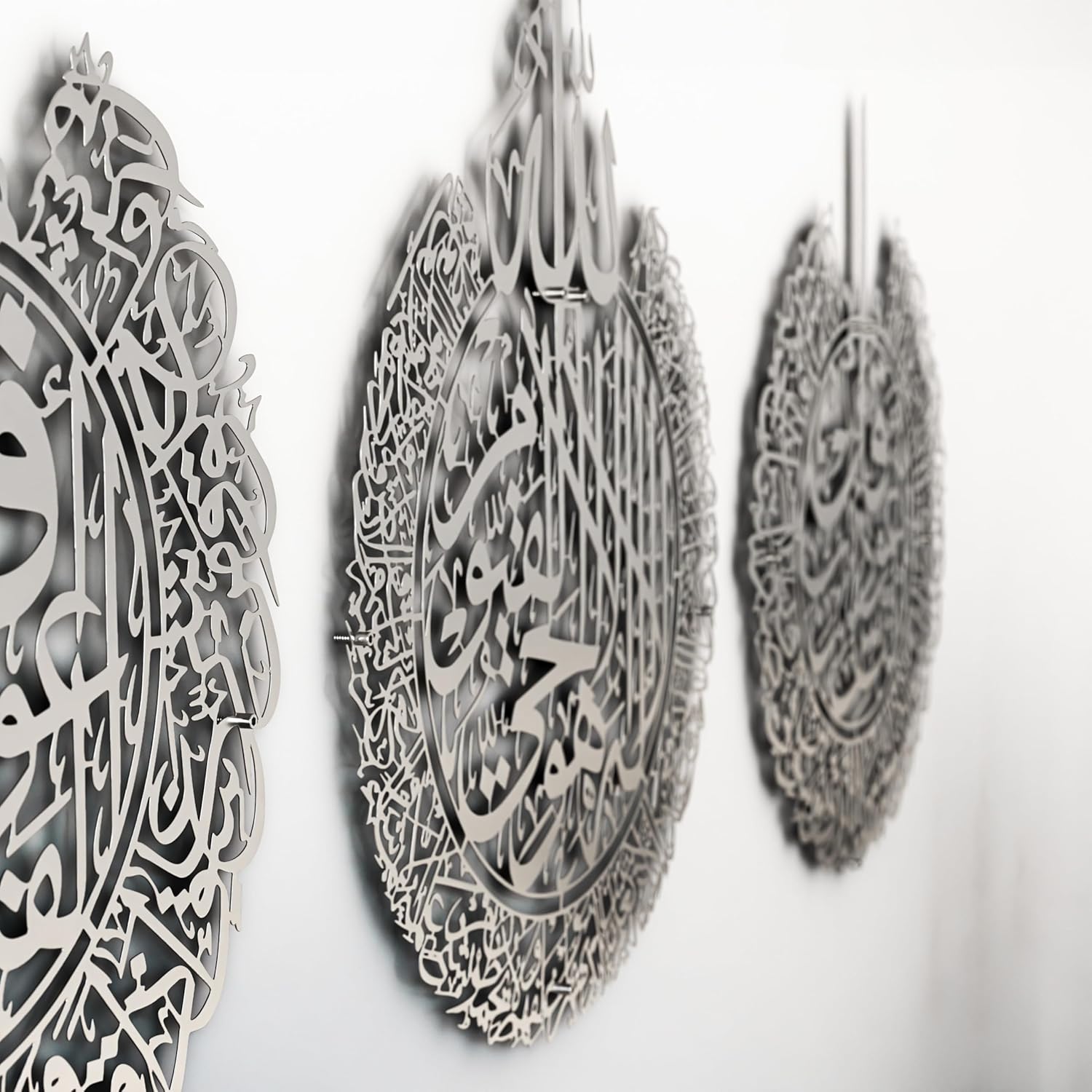 iwa concept Set of 3 Ayatul Kursi, Surah Al Falaq, Surah an NAS Islamic Metal Wall Art, Quran Wall Art, Arabic Calligraphy, Pray Room Decorations (M, Silver)