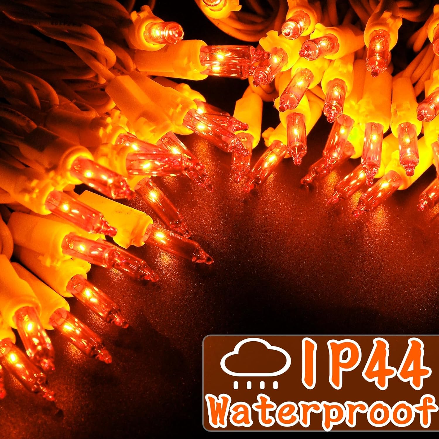 Christmas Mini String Lights Orange, 25FT 100 Count Incandescent Connectable Halloween Lights, UL Listed Waterproof Christmas Decorations for Indoor Outdoor Party Home Garden Decor, White Wire