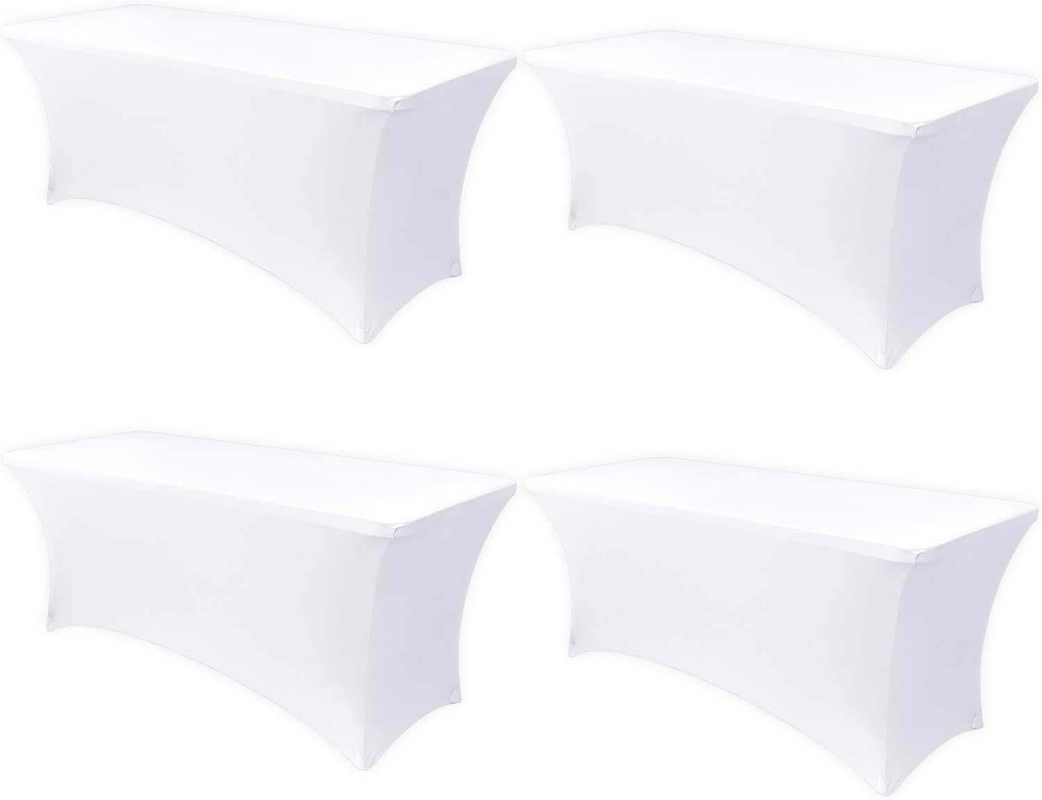 Obstal 8ft Stretch Spandex Table Cover - 4 Pack Universal Rectangular Fitted Tablecloth Protector for Wedding, Banquet and Party, White