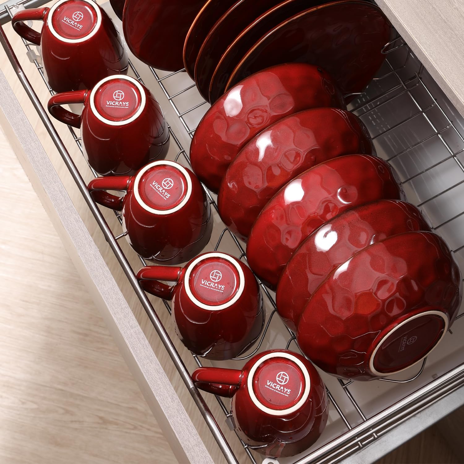 vicrays Coffee Mug Set, 12 Ounce, Set of 6, Ceramic Mug for Men, Women, Unique Glazed Mugs with Handle for Coffee, Tea, Milk, Cocoa, Cereal(Cherry Red)