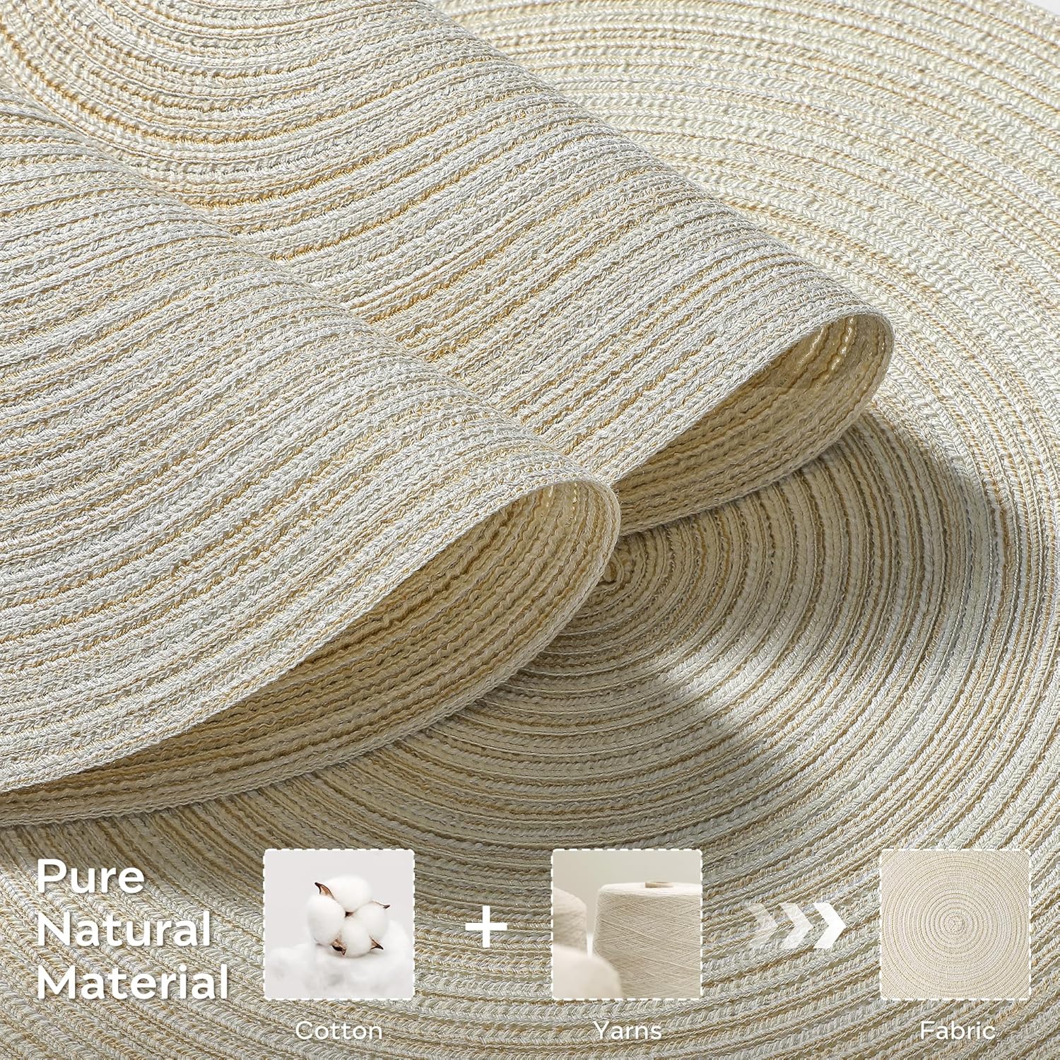 Leetaltree Round Placemats Heat and Slip Resistant Cotton Table Mats, Washable Bohemian Placemats for Dining Tables (White Beige, Set of 6)