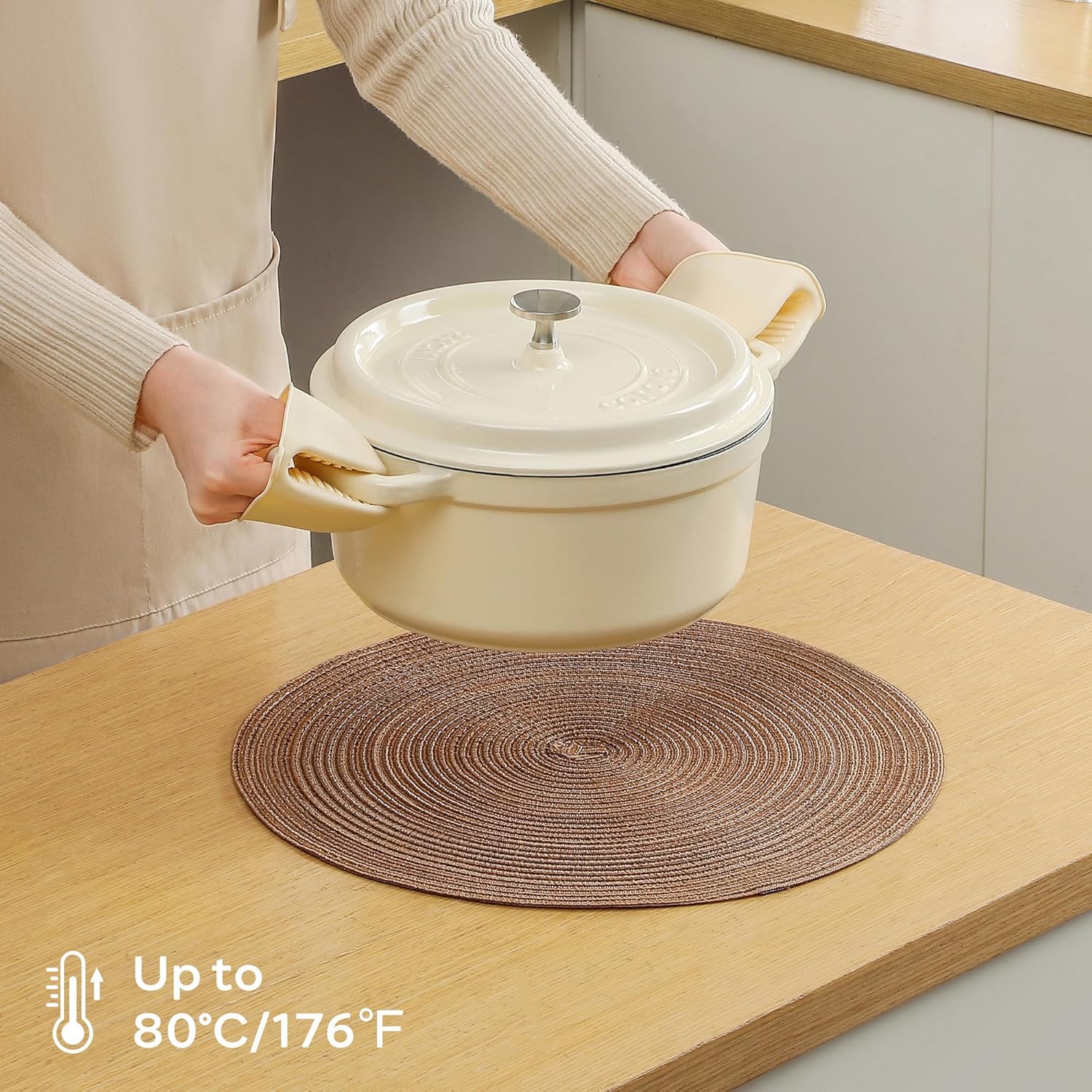 - Protect Your Dining Table: Our placemats can withstand temperatures up to 176°F (80°C), protecting your table from stains, hot food, or scratches from tableware. With a diameter of 15 inches, they perfectly fit a variety of tableware