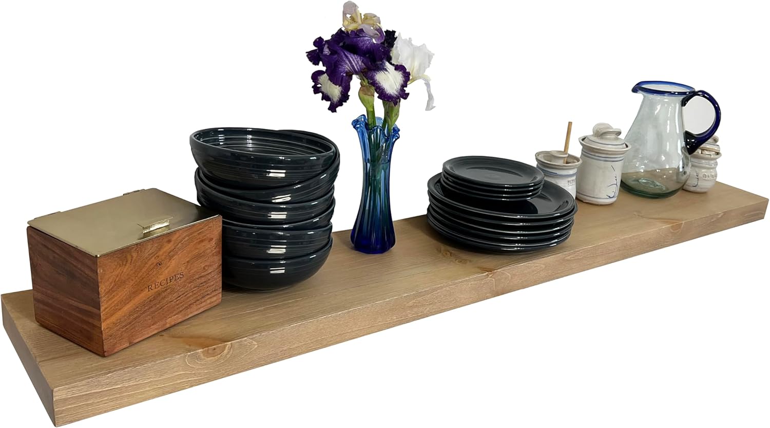 - Material: Solid White Pine 12"D x 72"W x 2"H, depth suitable for books, dishes, laundry items