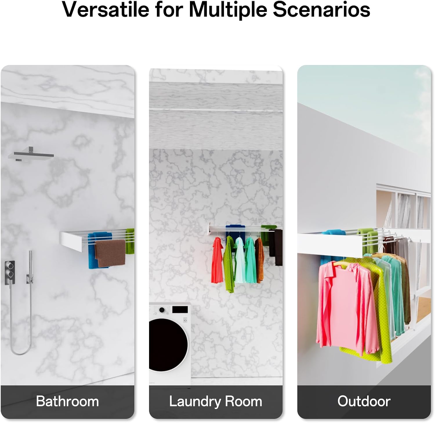 - 【Widely Used Scenarios】Multifunctional clothing drying racks are suitable for indoor or outdoor use. Used for drying towels, socks, shirts, sweaters, sports underwear, hats, coats, suits, dresses, shoes, etc. This practical wall mounted clothes rack is perfect for your balcony, terrace, and laundry, making your family more comfortable and beautiful.