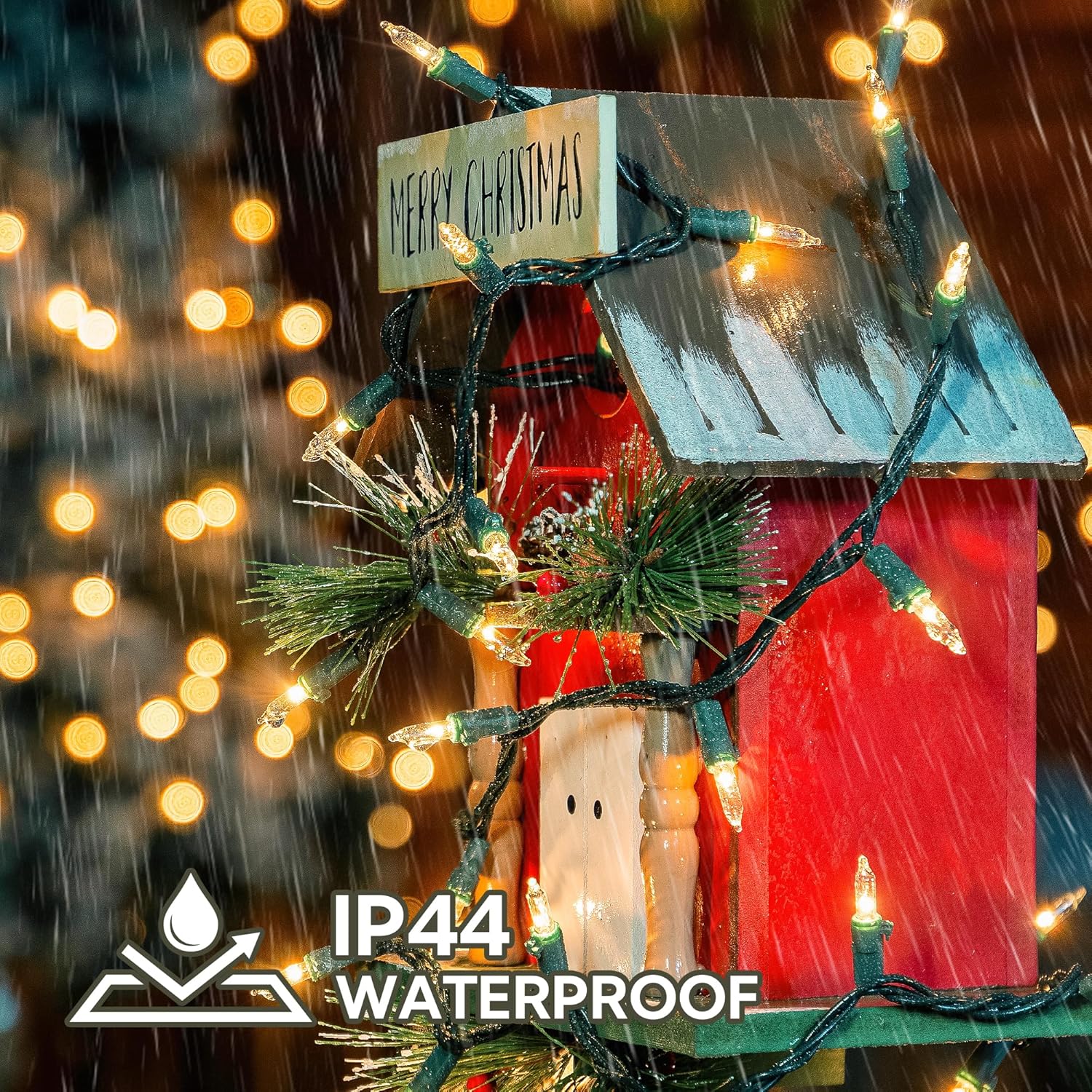 - ✨Perfect Christmas Decoration: The string lights possess IP44 waterproof properties and are highly suitable for both indoor and outdoor adornments, encompassing Christmas parties, Valentine's Day, weddings, homes, windows, bathrooms,restaurants, hotels, commercial buildings, festivals, holidays, showcases,shopping centers, trees, wreaths, tree wrappings, patios, pergolas, bushes, hedges, fences, pillars, and so on.