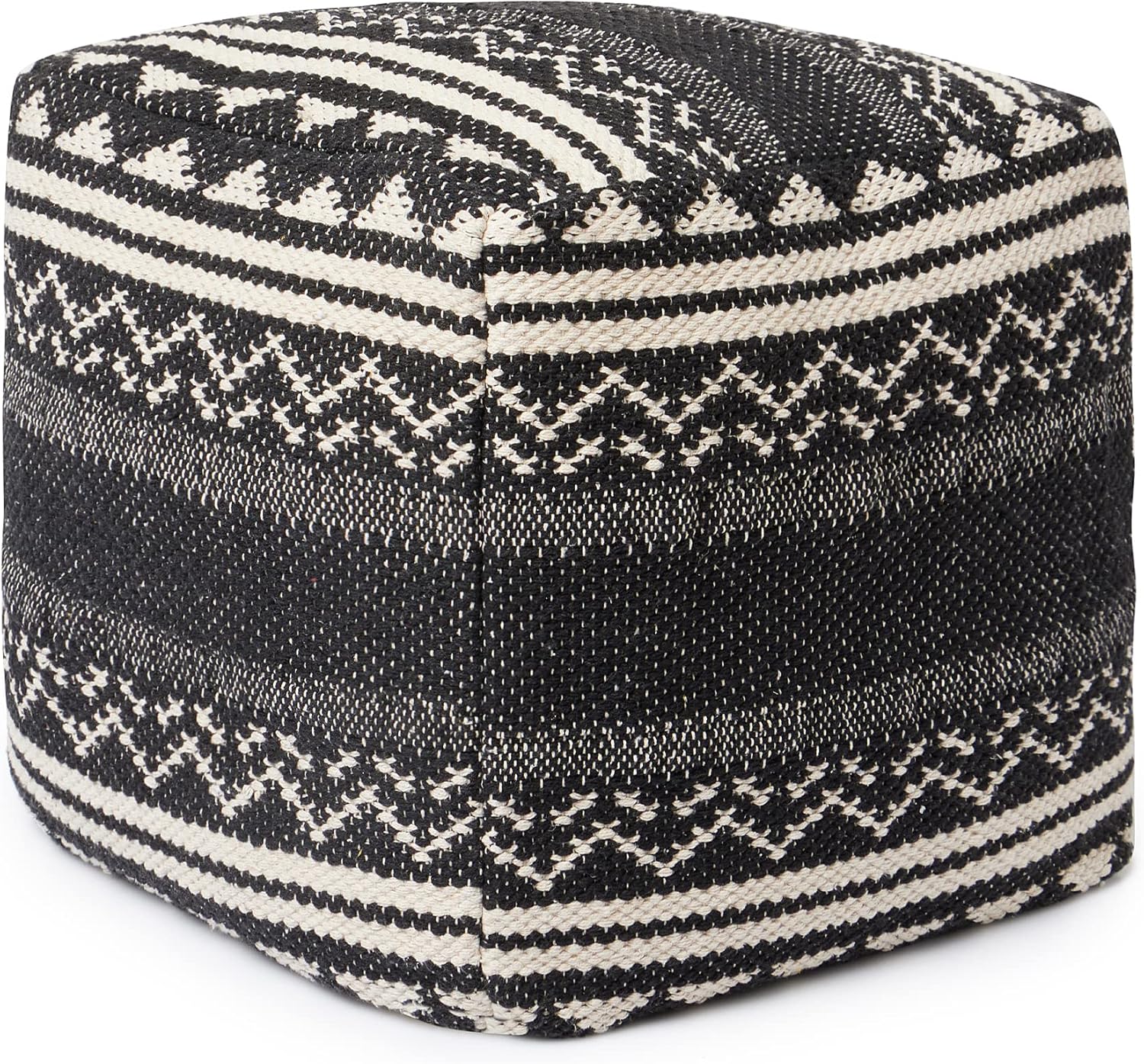 REDEARTH · Tufted Pouf Ottoman with Filler Textured Storage Cube Bean Bag Pouffe Footrest for Living Room, Bedroom, Nursery, Kidsroom; 100% Cotton (17.5"X17.5"X17.5", Ziggurat Obsession Black)