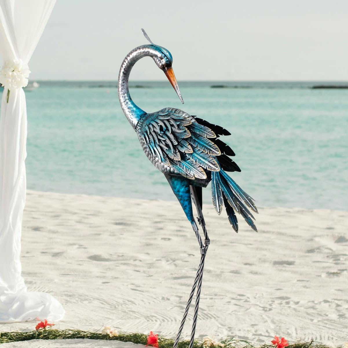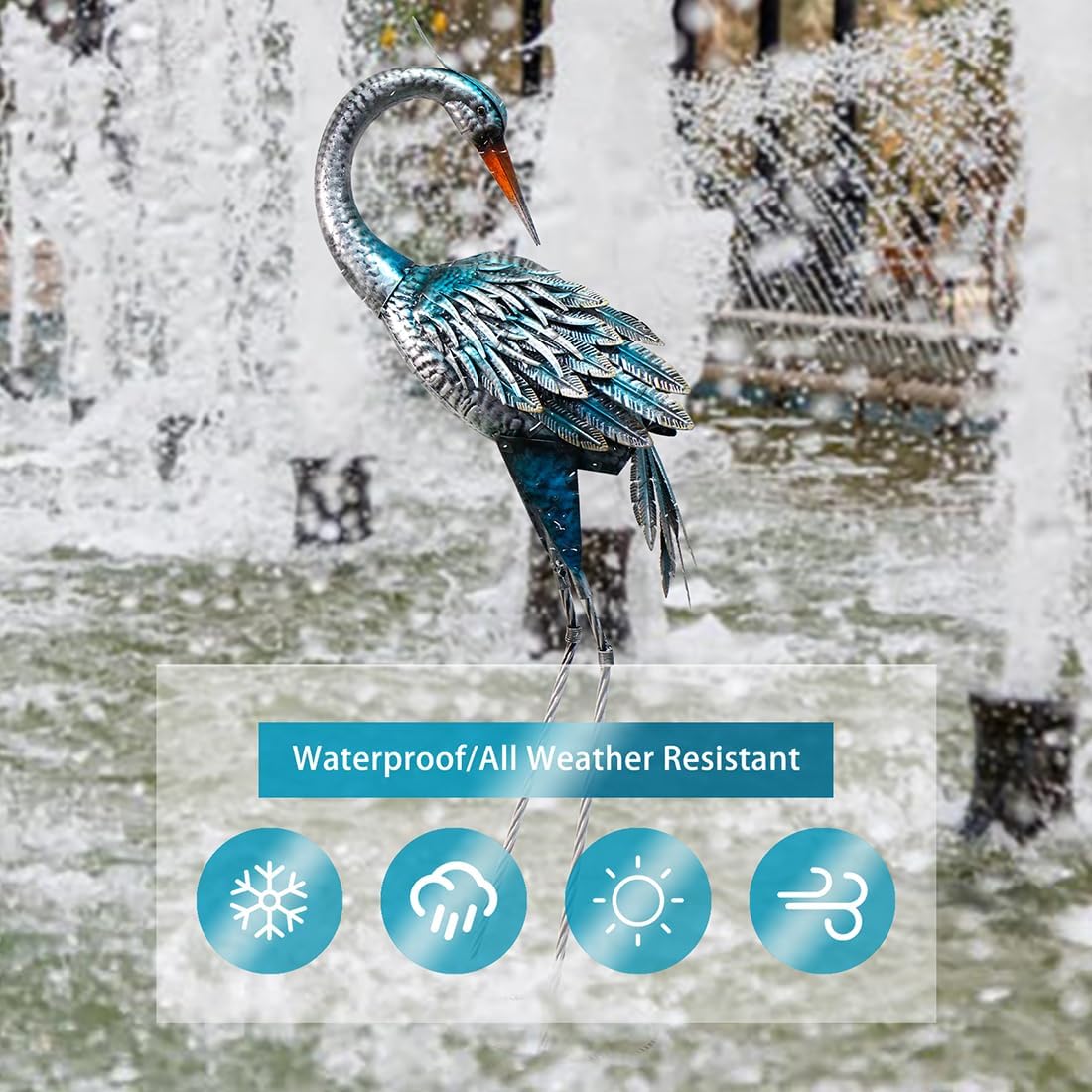 - Stable Garden Decor: The feet of the crane sculpture are U-shaped design and the package including 2 U-shaped stakes, U-shaped stakes can sink deeper in the ground for better securing