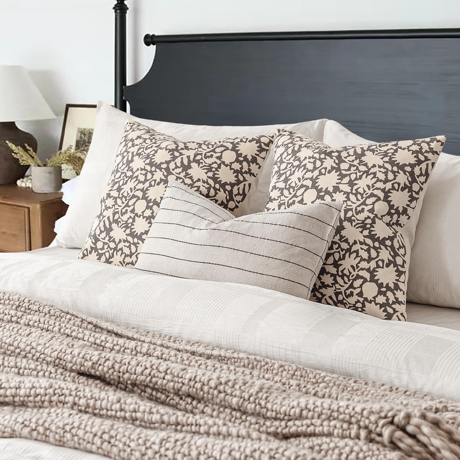 Foindtower Set of 2 Decorative Neutral Floral Throw Pillow Covers Accent Farmhouse Cushion Covers Boho Vintage Pillowcase for Couch Sofa Bedroom Living Room Home Decor Outdoor,22×22 Inch,Rustic Gray