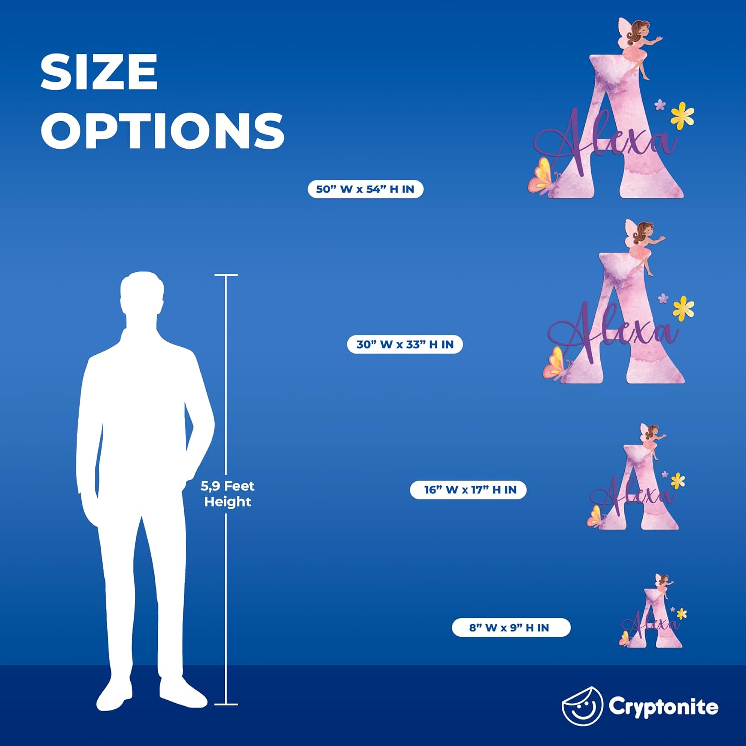 CRYPTONITE Custom Stickers Name & Initial for Fairy Decor I Fairy Pink Room Decor for Girl Bedroom Decor I Personalized Fairy Wall Decals for Little Girl Room Decor I Multiple Size Options (D. Fairy)