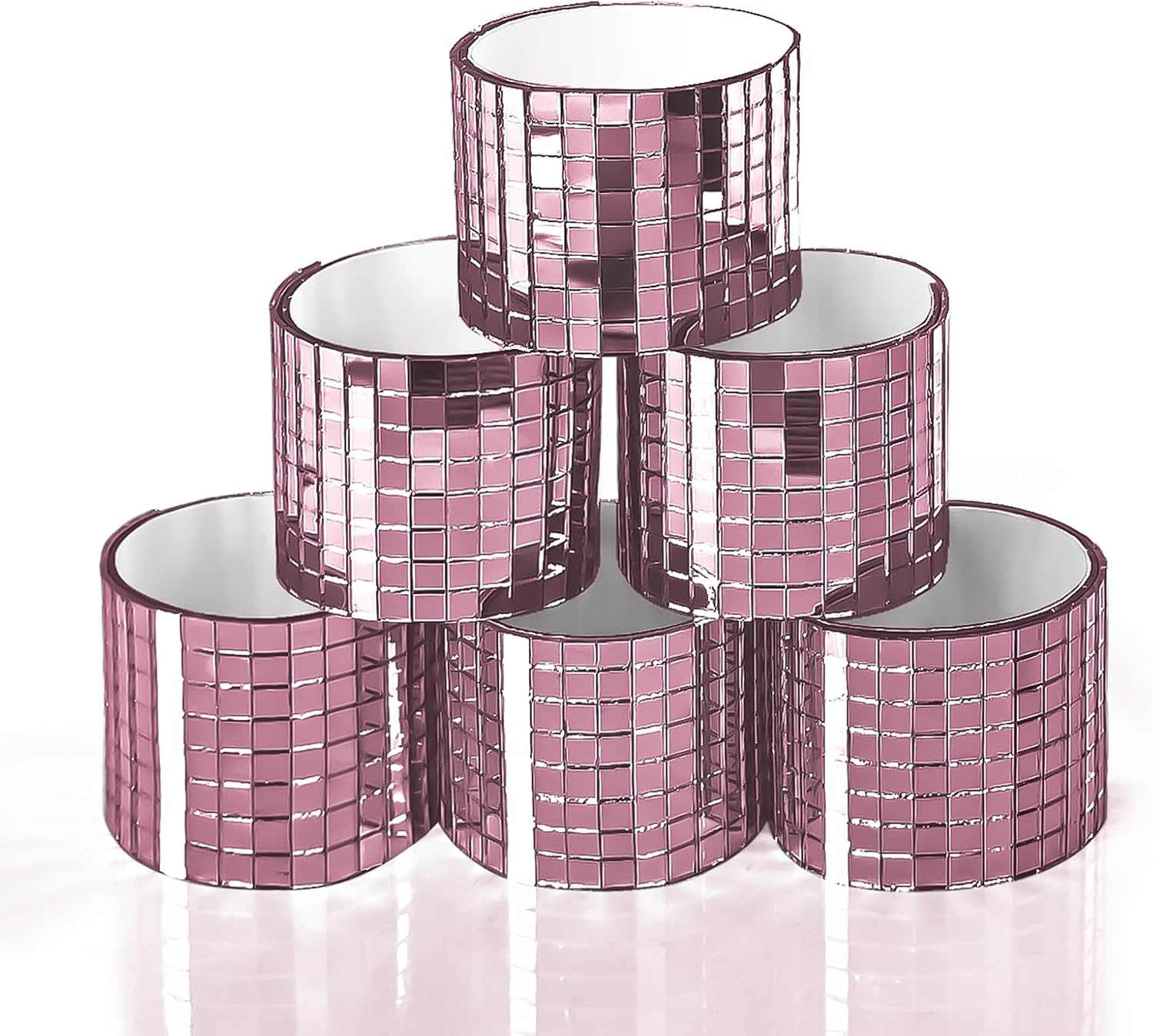 Art3dwallpanels 6 Pack Self Adhesive Glass Mirror Mosaic Disco Tiles Small Square Mirror Sticker for for DIY Disco Ball, Disco Cowboy Hat, Vase, Bottle, Interior Decoration, 2364 Pieces, Pink