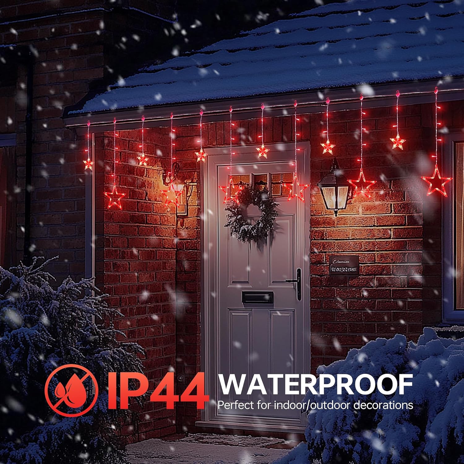 Red Christmas Star Icicle Lights,8.2FT 126LED Curtain String 8 Modes Memory Timer,Connectable Plug in Waterproof for Halloween/Valentine's Day/Patio/Wedding/Party/Xmas Indoor Outdoor Decor,Red