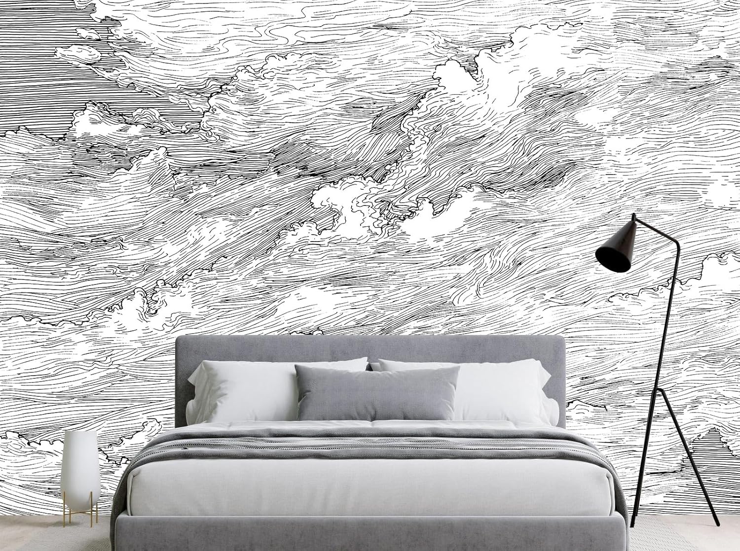 Black and White Cloud Wallpaper Wall Mural for Bedroom Living Room(Not Peel n' Stick)