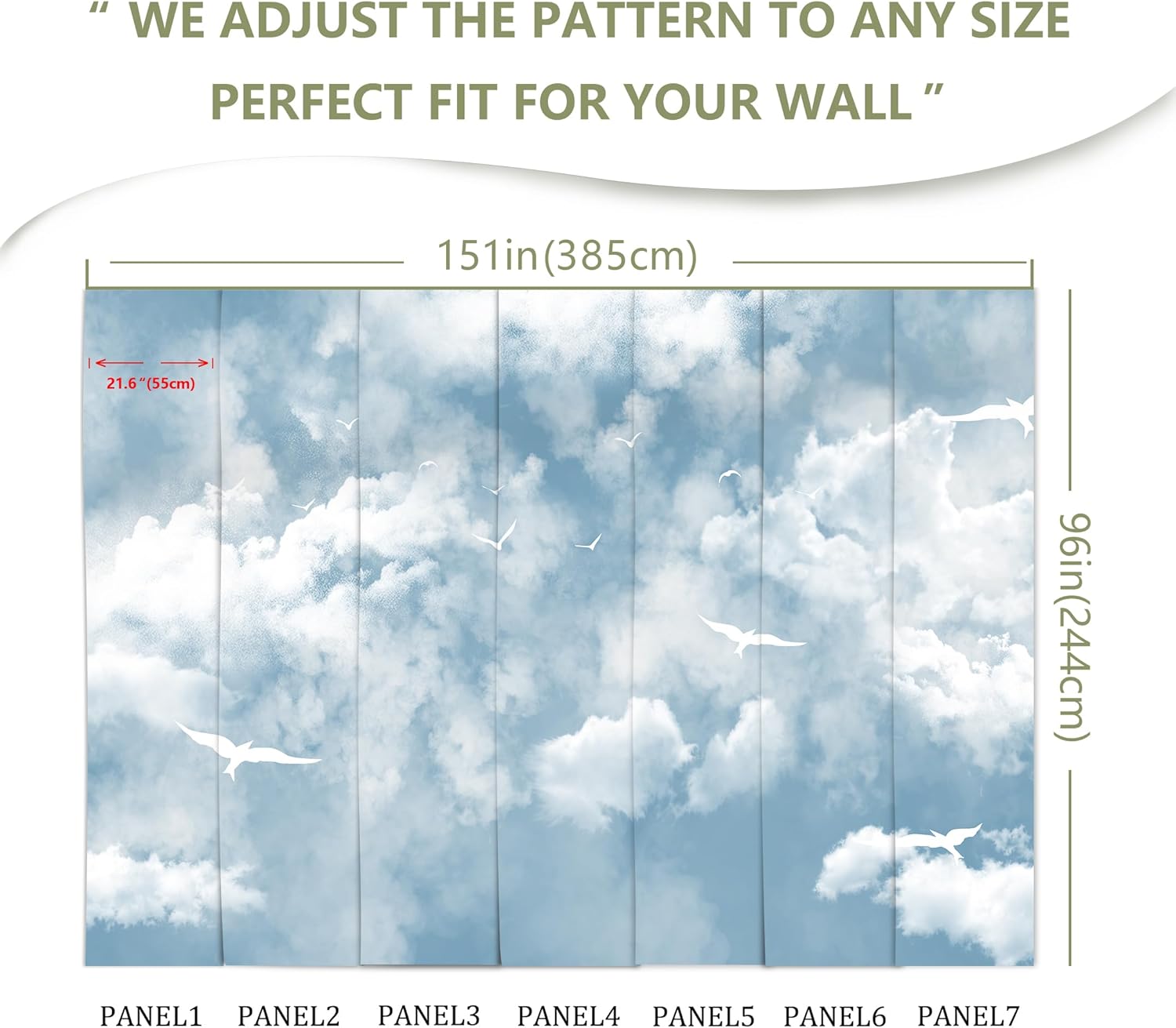 - MATERIAL - Cloud murals for walls is made of premium silk material. Ecological printing with lightfast, UV resistant lasting colors. Durable and waterproof, fadeless and odorless, non-toxic and eco-friendly.