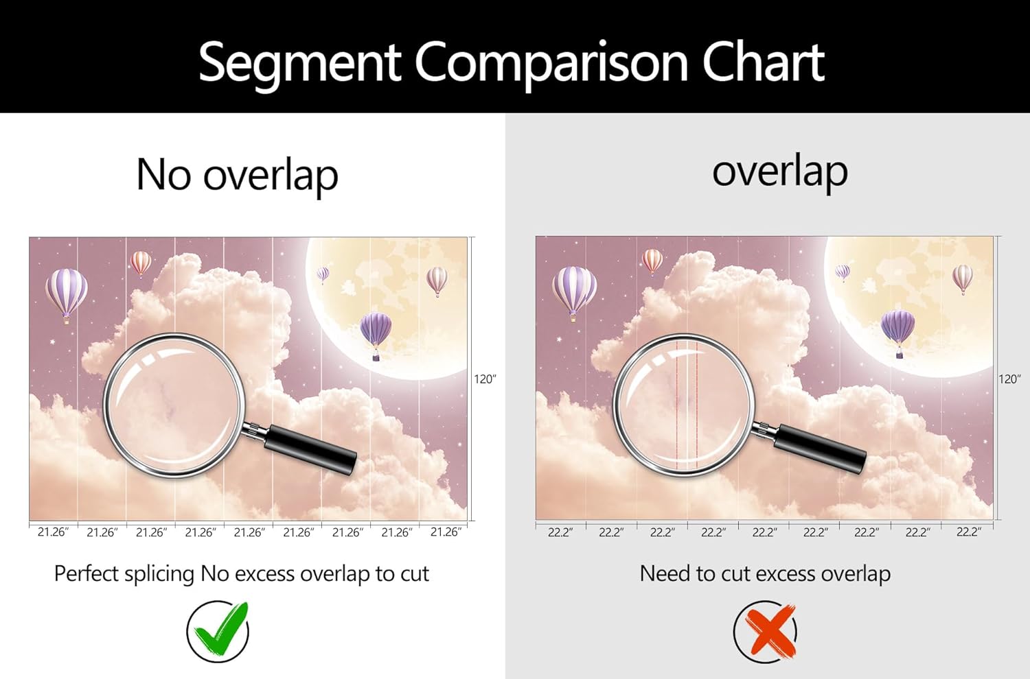 - Mural Size: The total size of this mural wallpaper is 191" x 120" / 486CM x 305CM (W x H), cut into 9 pieces, each measuring 21.26" x 120", for easy installation.