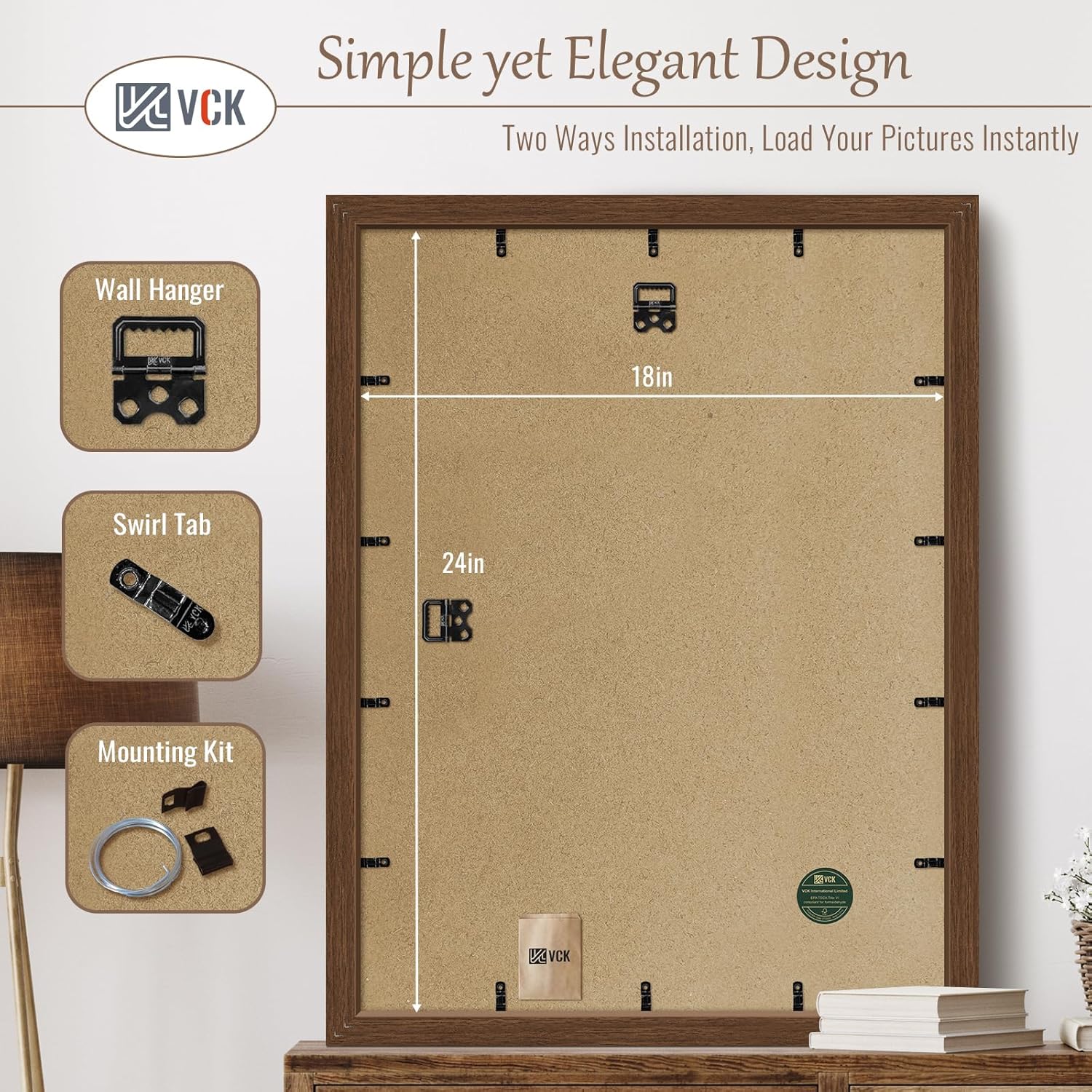 VCK 18x24 Brown Poster Frame 3 Pack, Wood Picture Frame with Exclusive Wood Grain, Wall Mounting Hanging